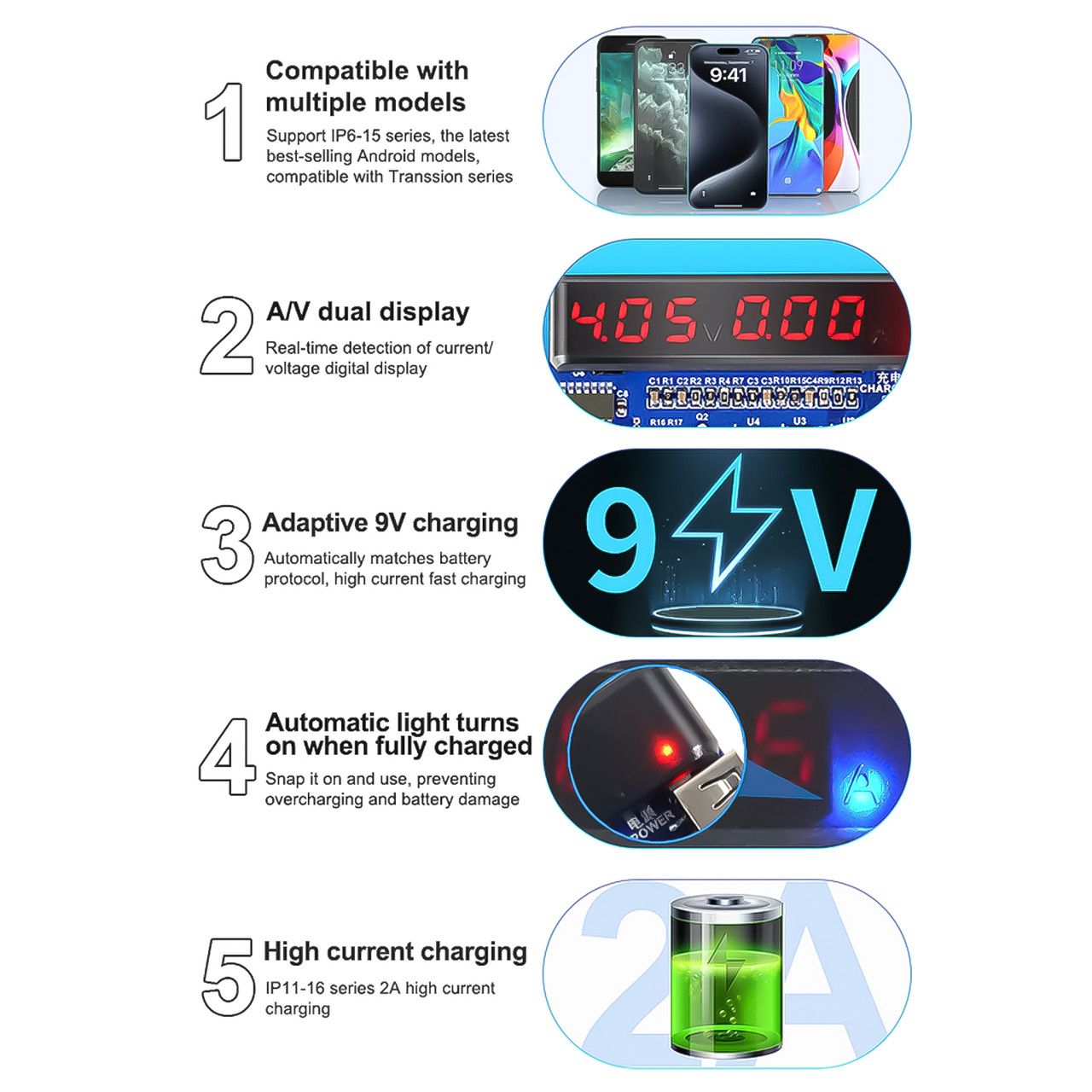 Благодаря встроенному интеллектуальному чипу, цифровому дисплею и системе защиты, Sunshine SS-916 Ultra обеспечивает безопасную, быструю и эффективную работу с аккумуляторами. Это идеальный выбор для мастеров сервисных центров и энтузиастов, занимающихся ремонтом мобильной техники.
