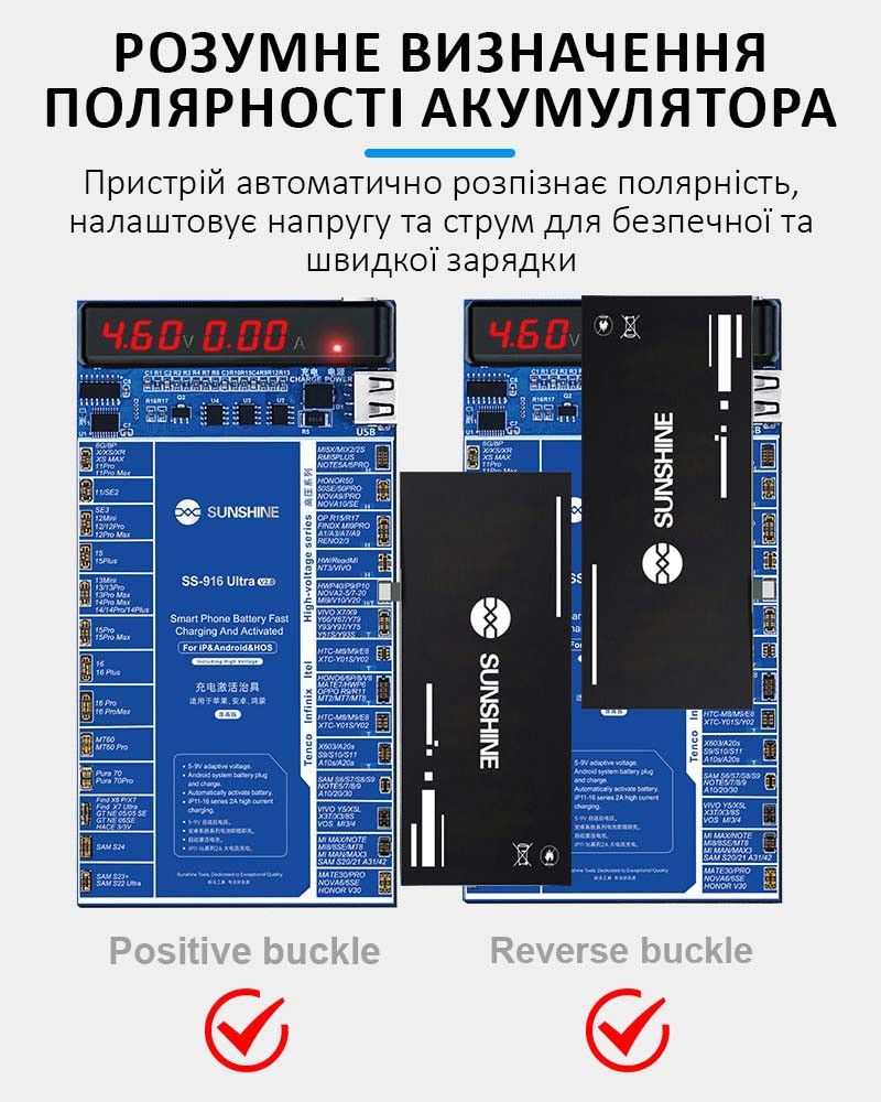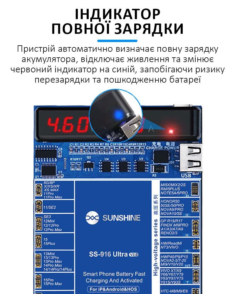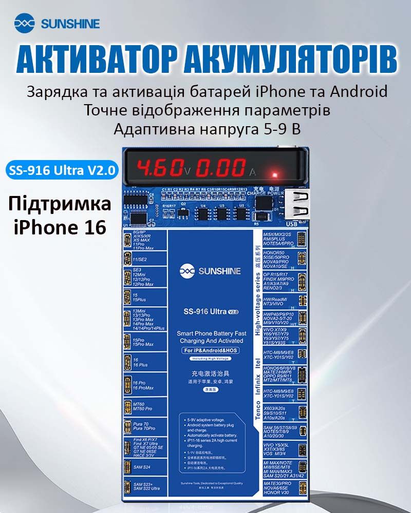 Sunshine SS-916 Ultra активатор аккумуляторов для iPhone 6 - 16 Pro Max / Samsung / Huawei / Xiaomi