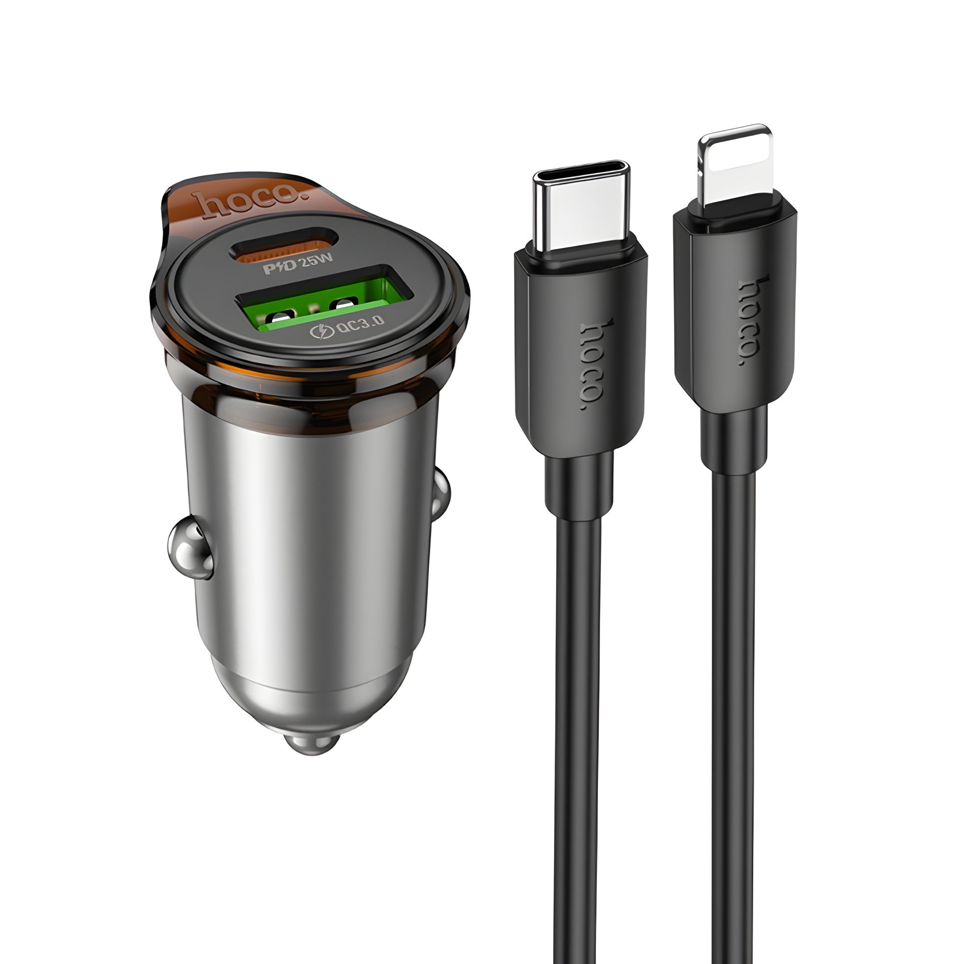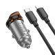 Автомобильное Устройство для Зарядки Hoco NZ16A USB/ Type-C 43W PD QC 25W метал серый + кабель Type-C to Lightning