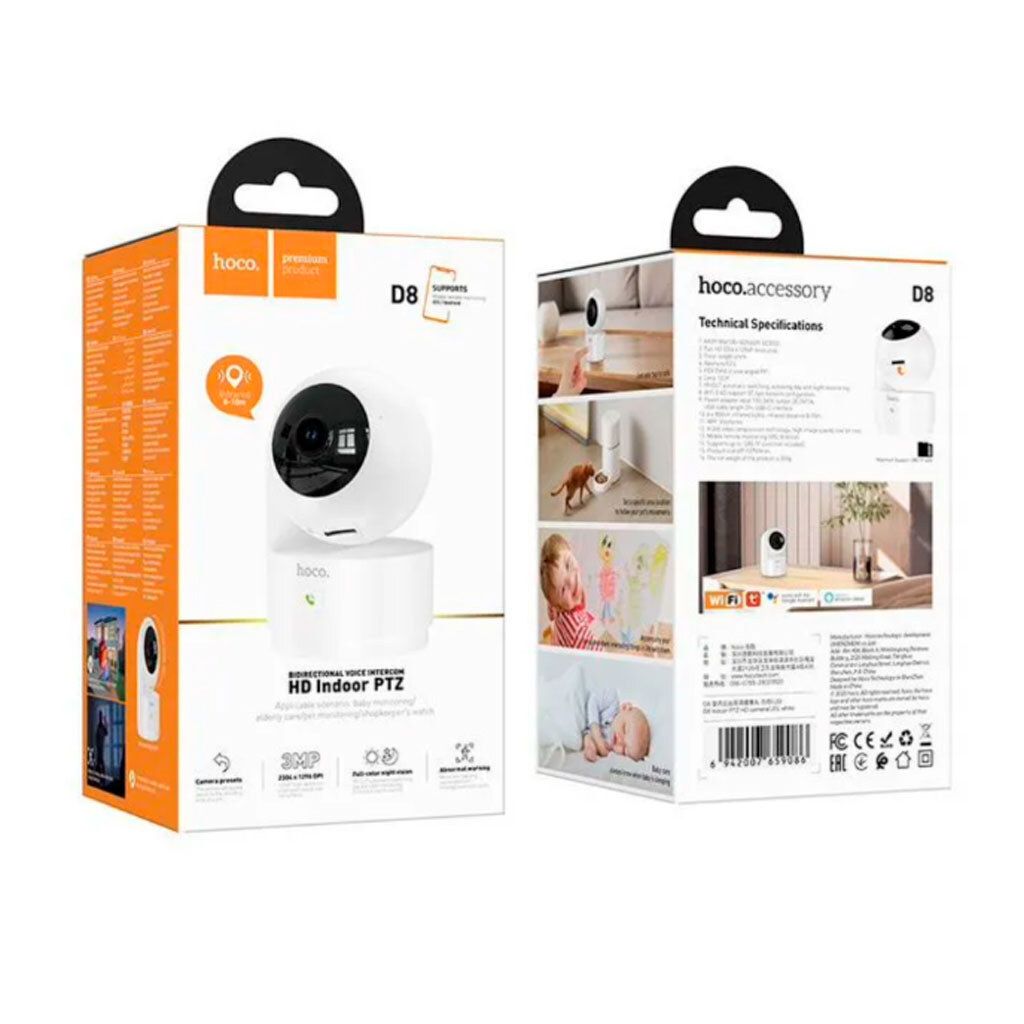 IP-камера HOCO D8 — это современное решение для видеонаблюдения, которое обеспечивает высокое качество изображения и удобное удалённое управление. Камера оснащена функцией панорамного обзора, инфракрасной подсветкой для ночной съёмки и поддержкой локального и облачного хранения данных.