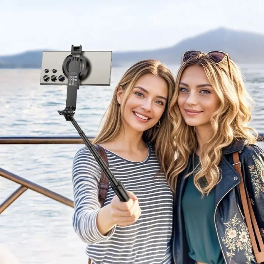 - Рукоять раскладывается в устойчивый трипод для съемки групповых фото, трансляций или видеоблогов.