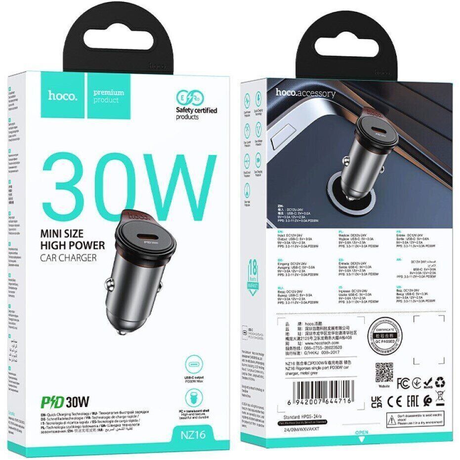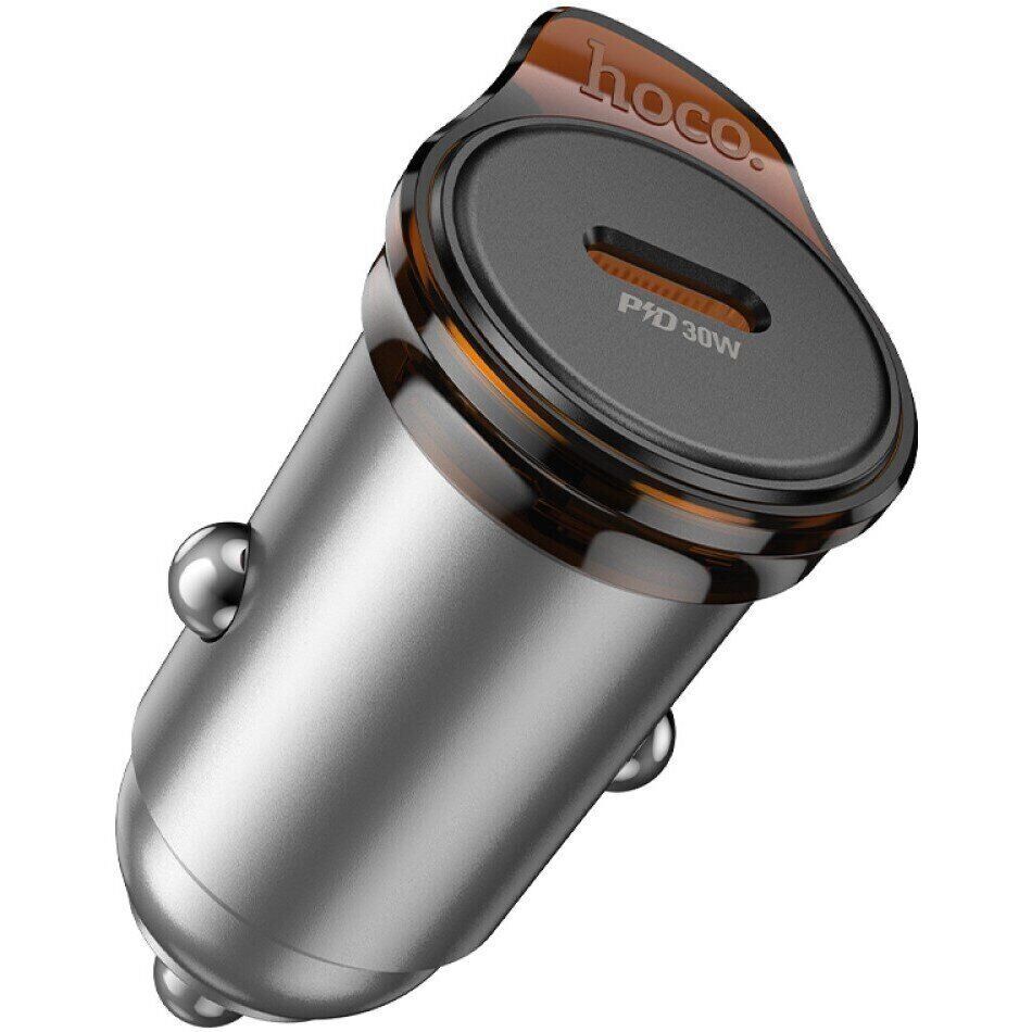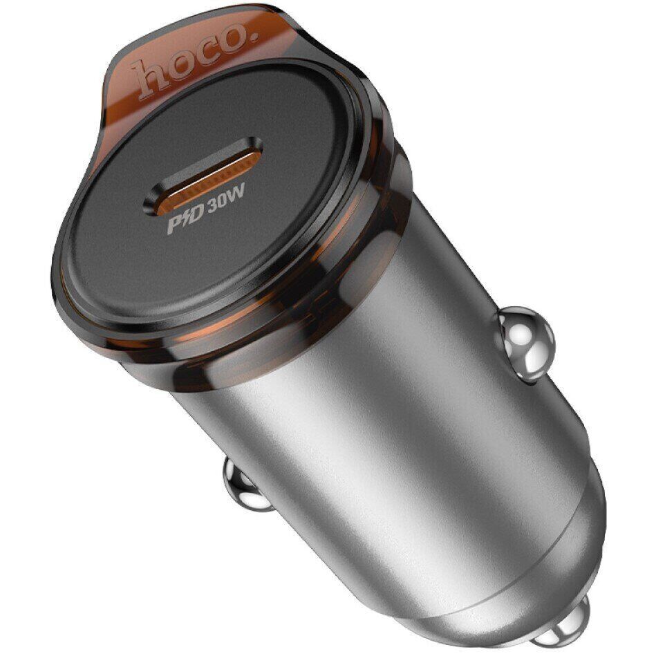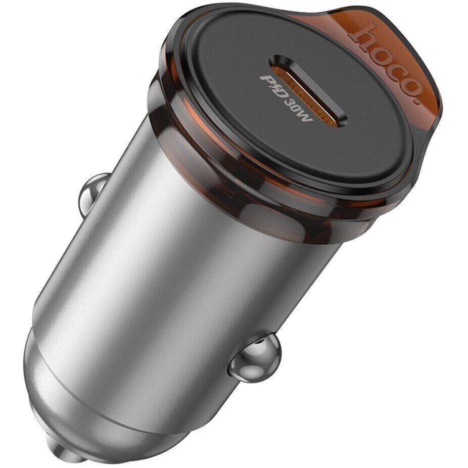 Серое металлическое зарядное устройство для автомобиля Hoco NZ16 Type-C PD 30W