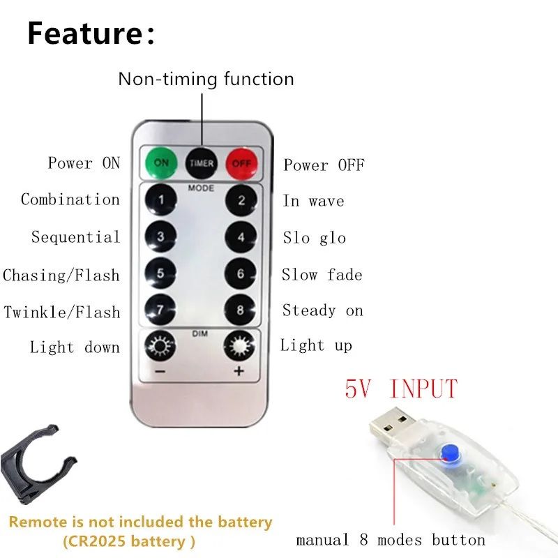 Работает от USB, что делает использование максимально удобным — гирлянду можно подключить к адаптеру, ноутбуку, повербанку или любому другому источнику питания с USB-разъемом. Управление осуществляется с помощью пульта дистанционного управления, который позволяет переключать режимы и регулировать освещение на расстоянии.