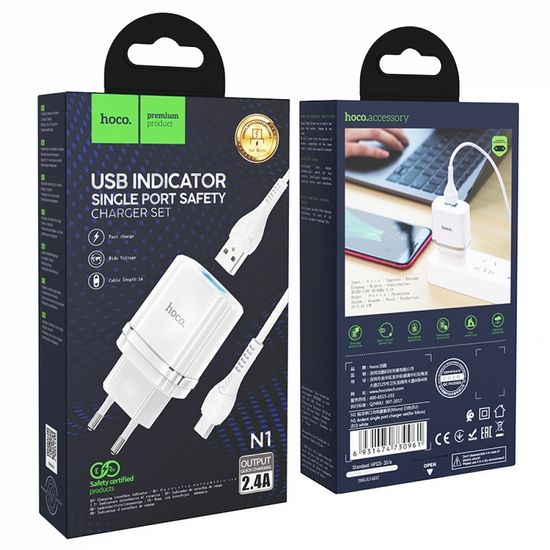 Hoco N1 сетевое зарядное устройство USB белое + кабель USB to MicroUSB