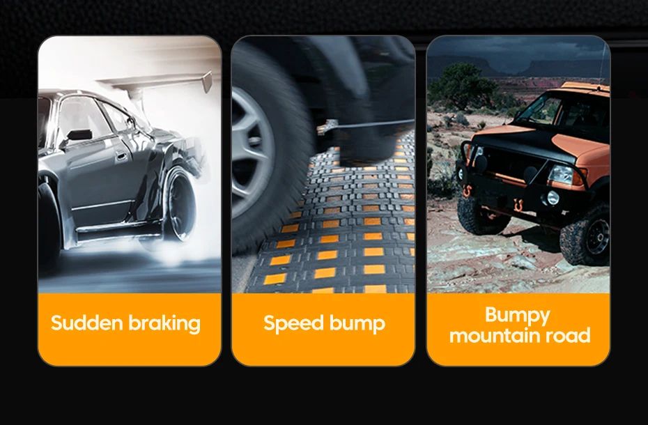- Держатель сохраняет стабильность при резком торможении, проезде по «лежачимполицейским» или неровным трассам.