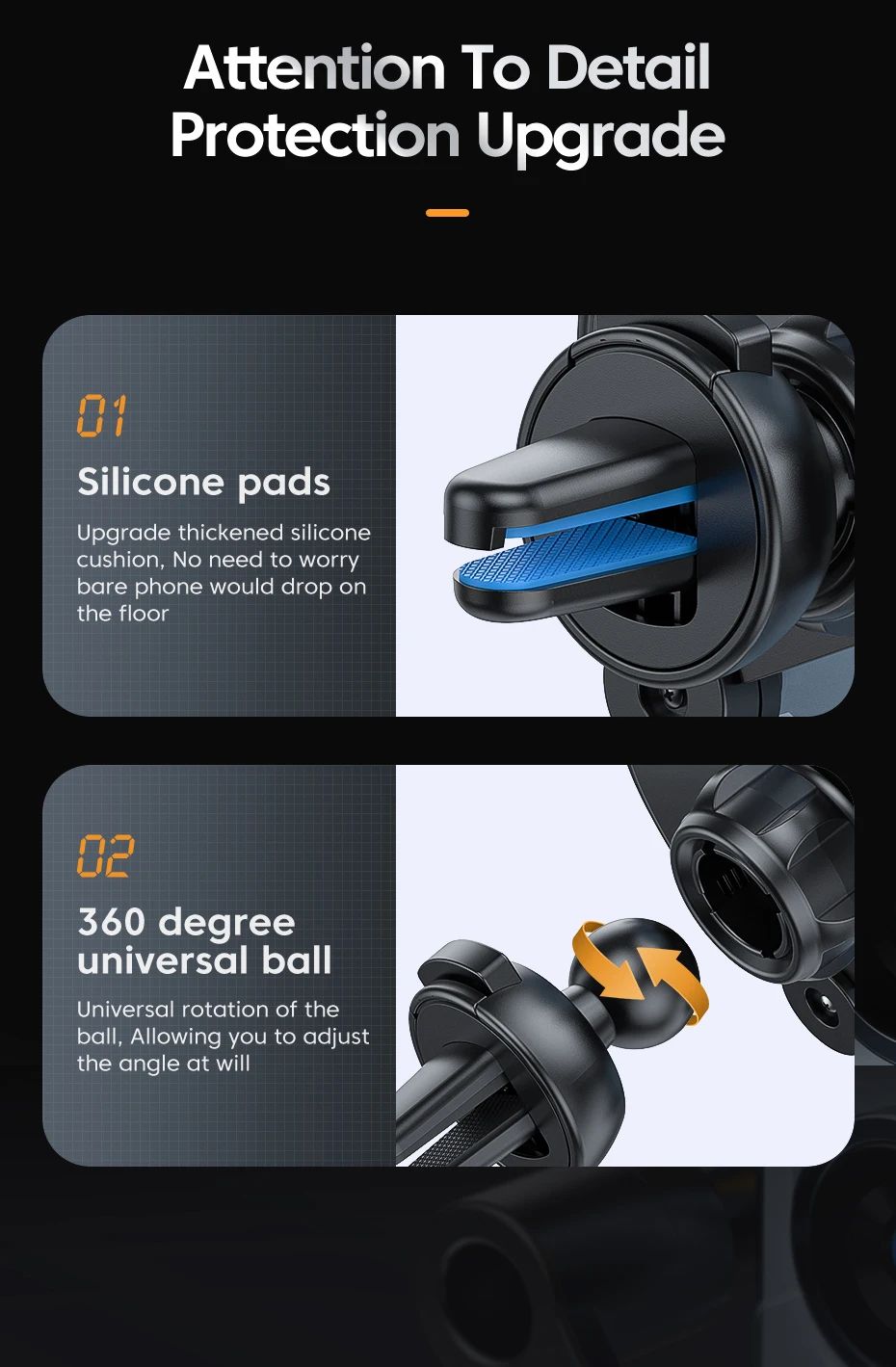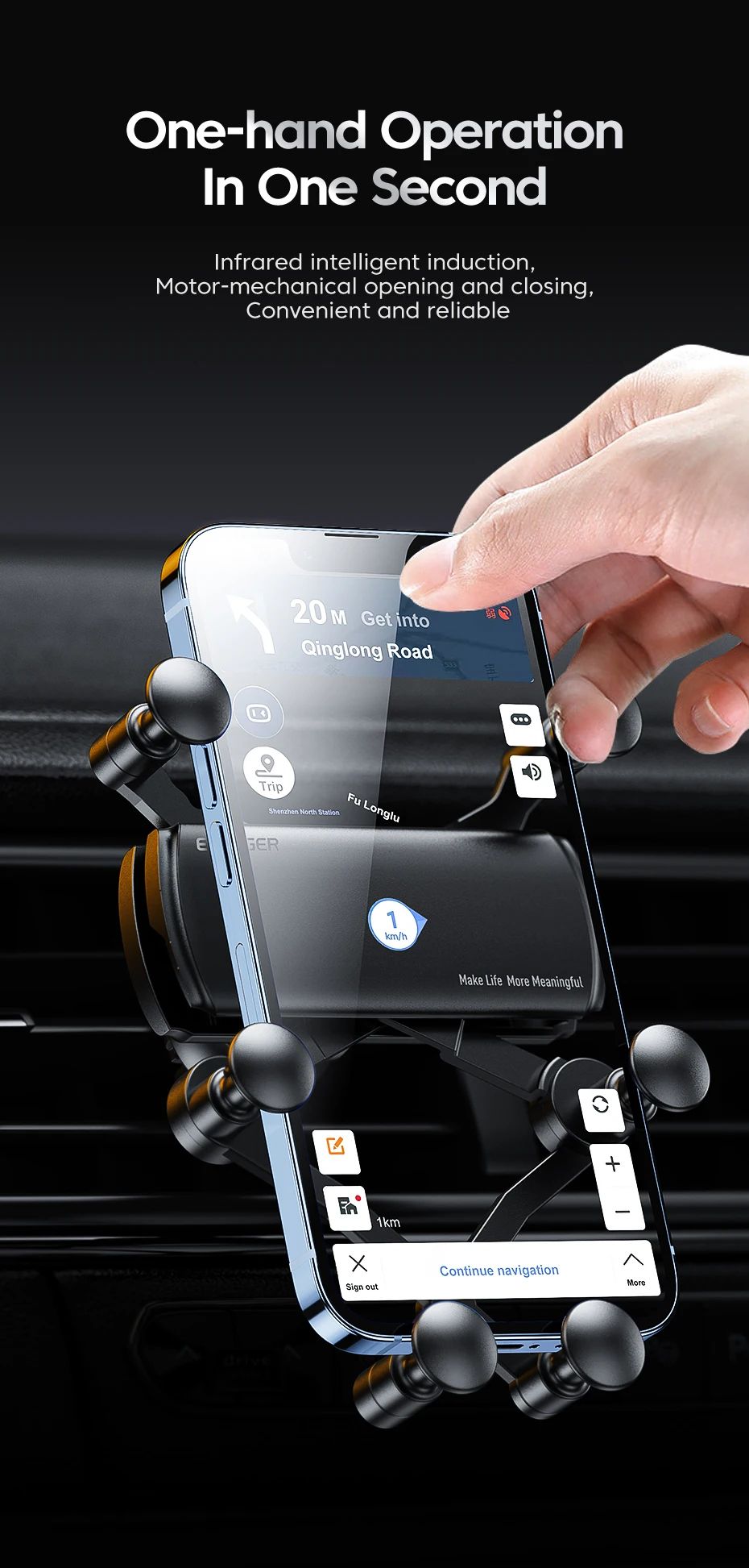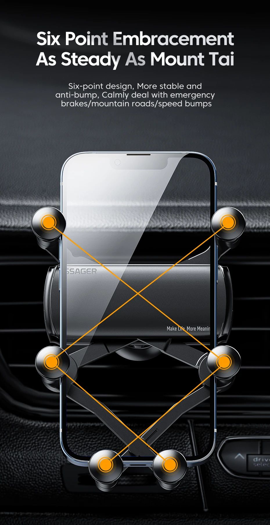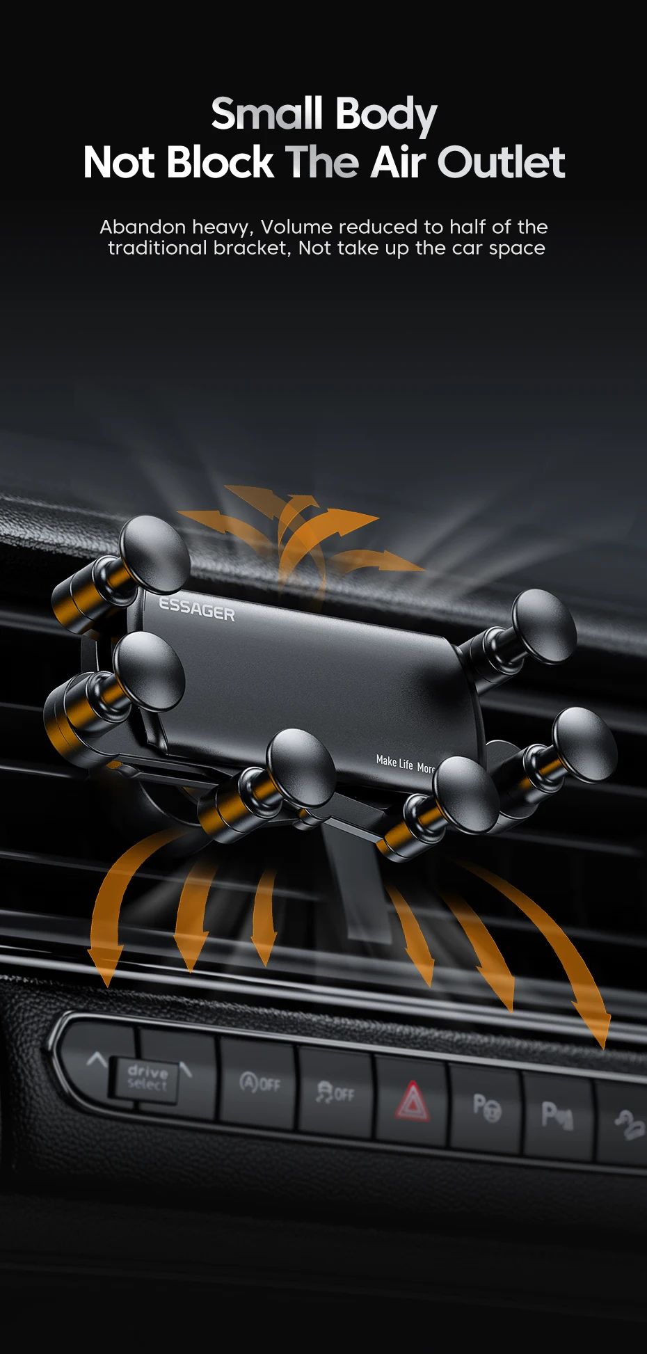АвтомобильныйдержательEssager Universal 6-points Gravity Car Holder — этонадежное и компактноерешениедлябезопасной и удобнойфиксациисмартфона в автомобиле. Уникальнаяконструкция с шеститочечнымзахватомгарантируетустойчивостьдаженанеровныхдорогах, а системагравитационногозажимапозволяетустанавливатьтелефоноднойрукойзасчитанныесекунды.