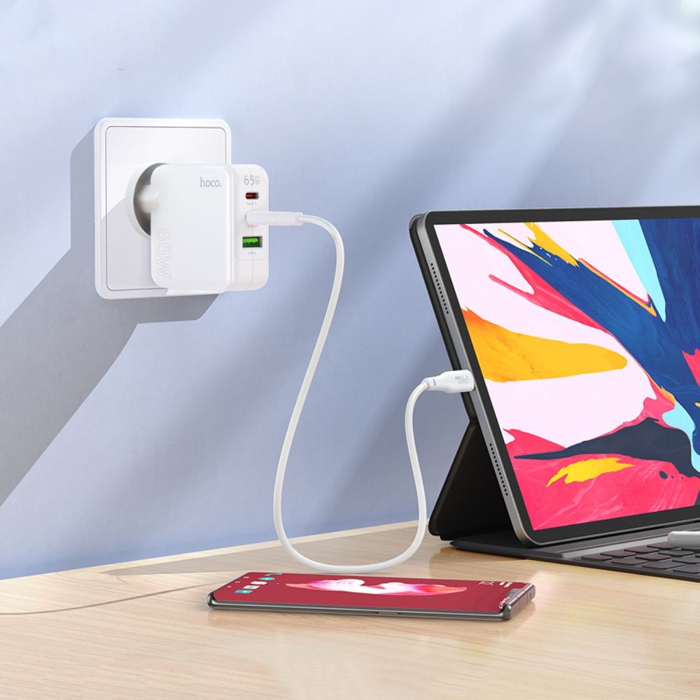 Сетевое зарядное устройство Hoco C115A 2 Type-C/ USB PD 65W белое