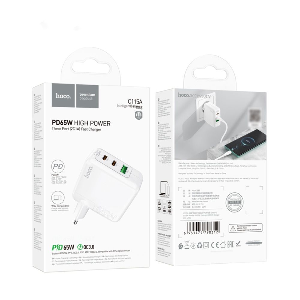 СетевоезарядноеустройствоHoco C115A — этоуниверсальный и мощныйадаптер, созданный с применениеминновационнойтехнологииGaN (нитридгаллия). Благодаряэтомуоноотличаетсякомпактнымиразмерами, высокойэнергоэффективностью и минимальнымнагревомдажепримаксимальнойнагрузке.