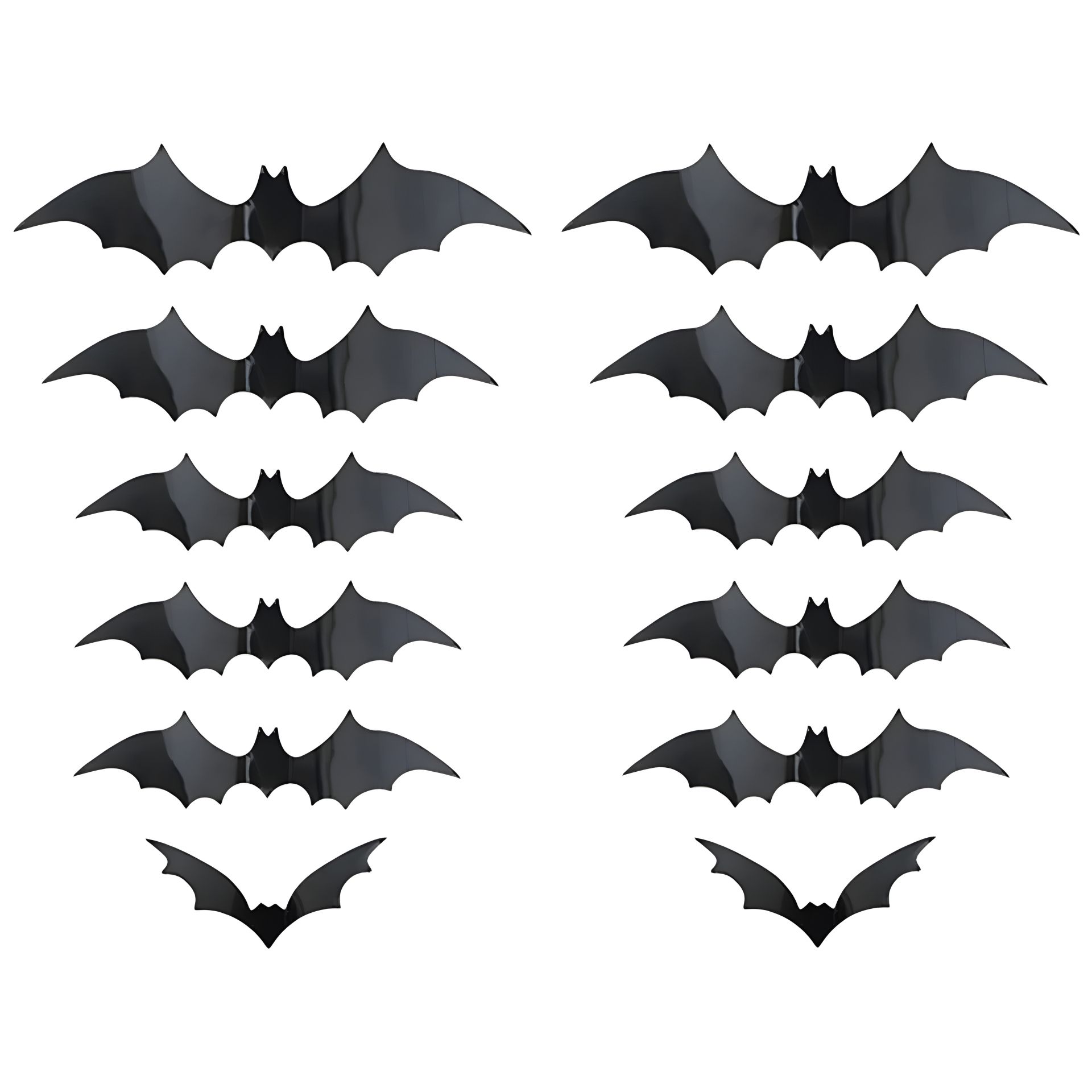 Украшение для Halloween: Набор из 12 черных 3D летучих мышей