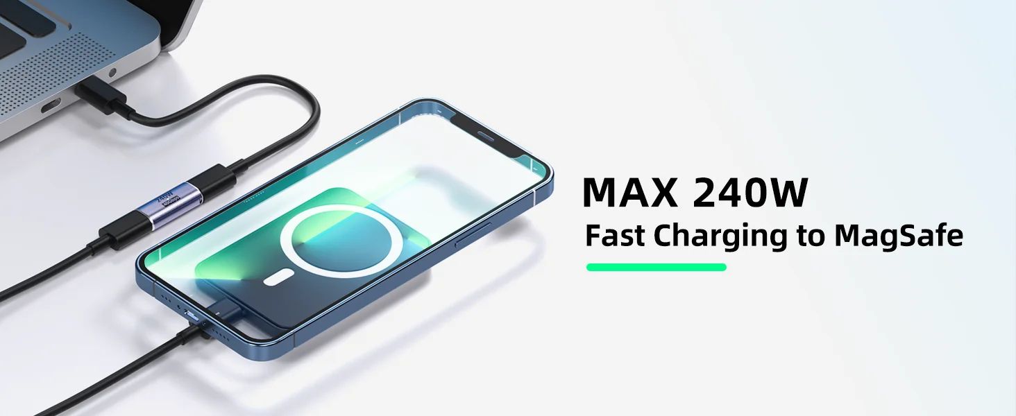 - Поддержка PD до 240 Вт позволяет заряжать даже энергоёмкие устройства, включая MacBookPro.