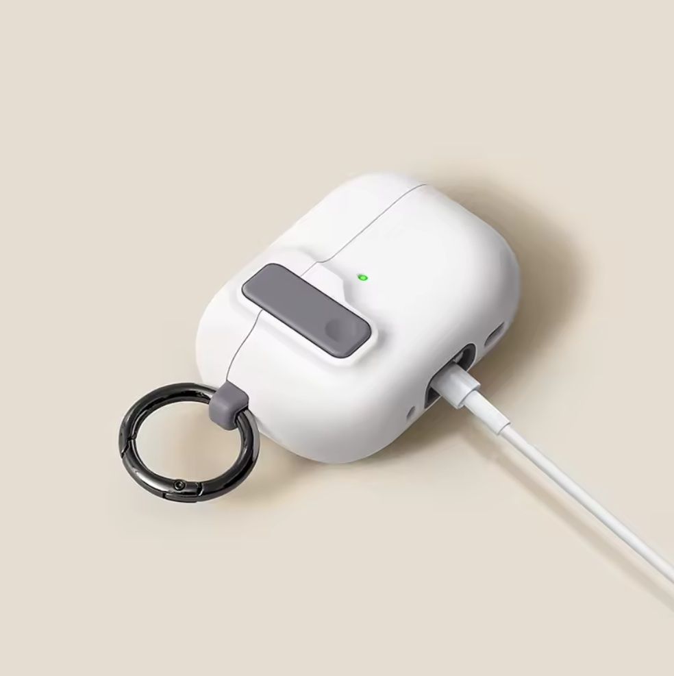 Белый чехол для AirPods 4 с кольцом и замком, PVC White