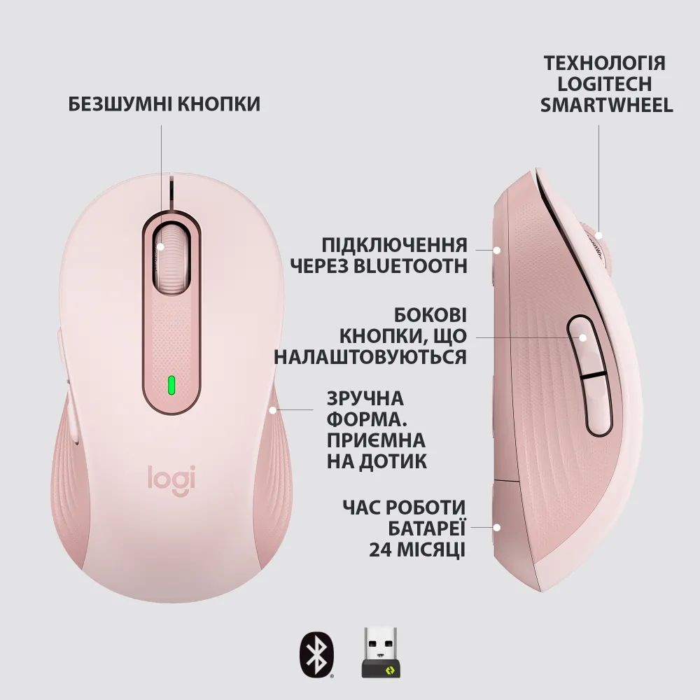 Мышь Logitech Signature M650 Wireless Mouse Rose (910-006254) - Беспроводной контроль