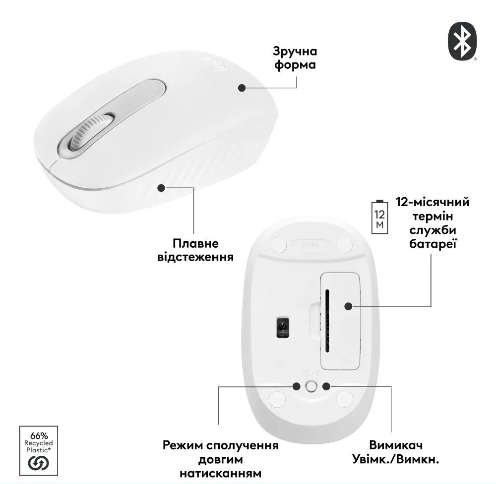 Миша Logitech M196 Bluetooth White (910-007460)
