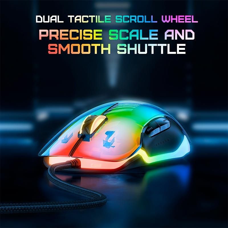 Игровая мышь Onikuma RGB с подсветкой, CW925 |12800 DPI| прозрачный-чёрный