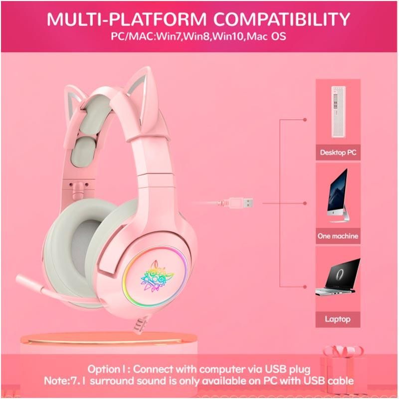 Игровые наушники ONIKUMA Gaming CAT with LED K9 7.1 (розовые)