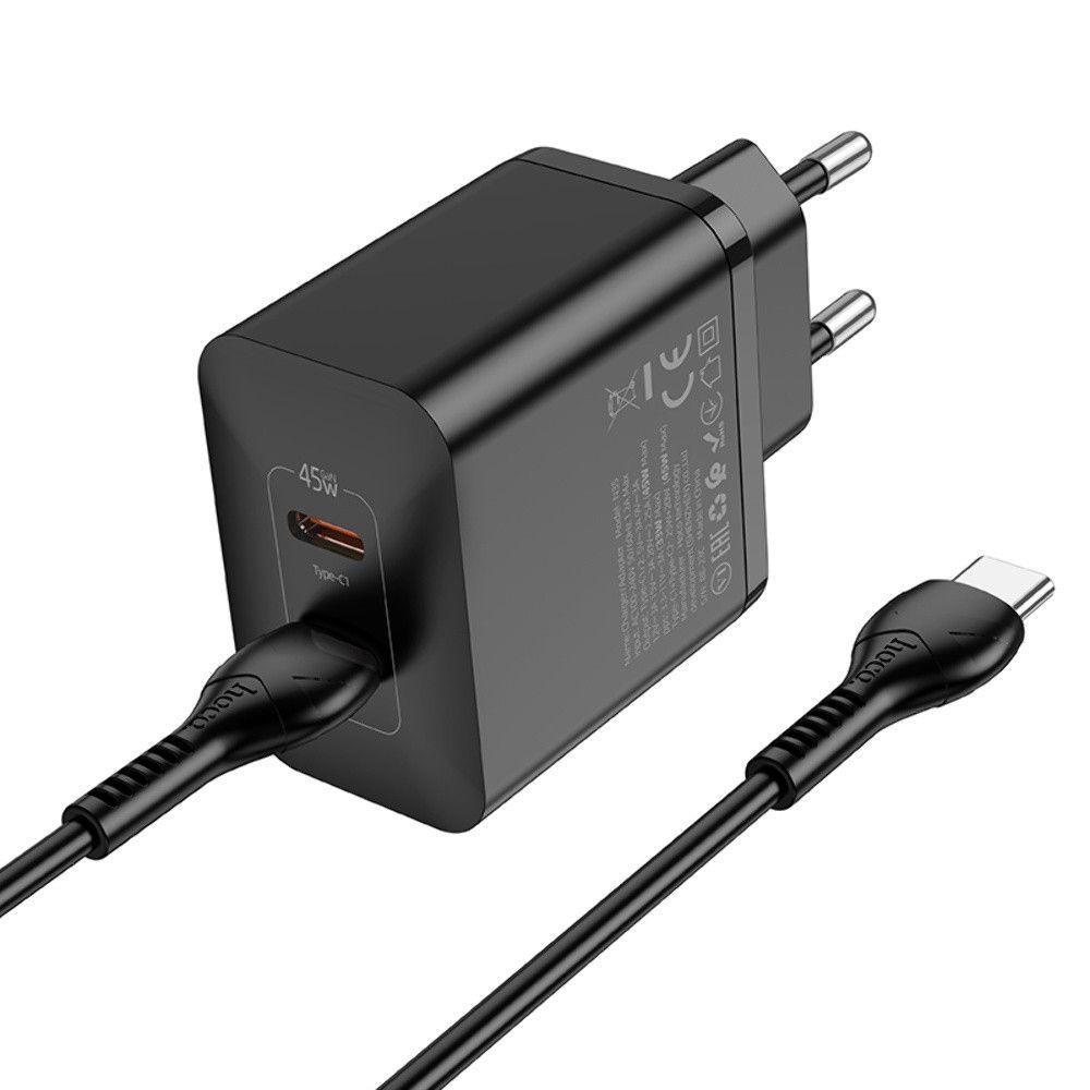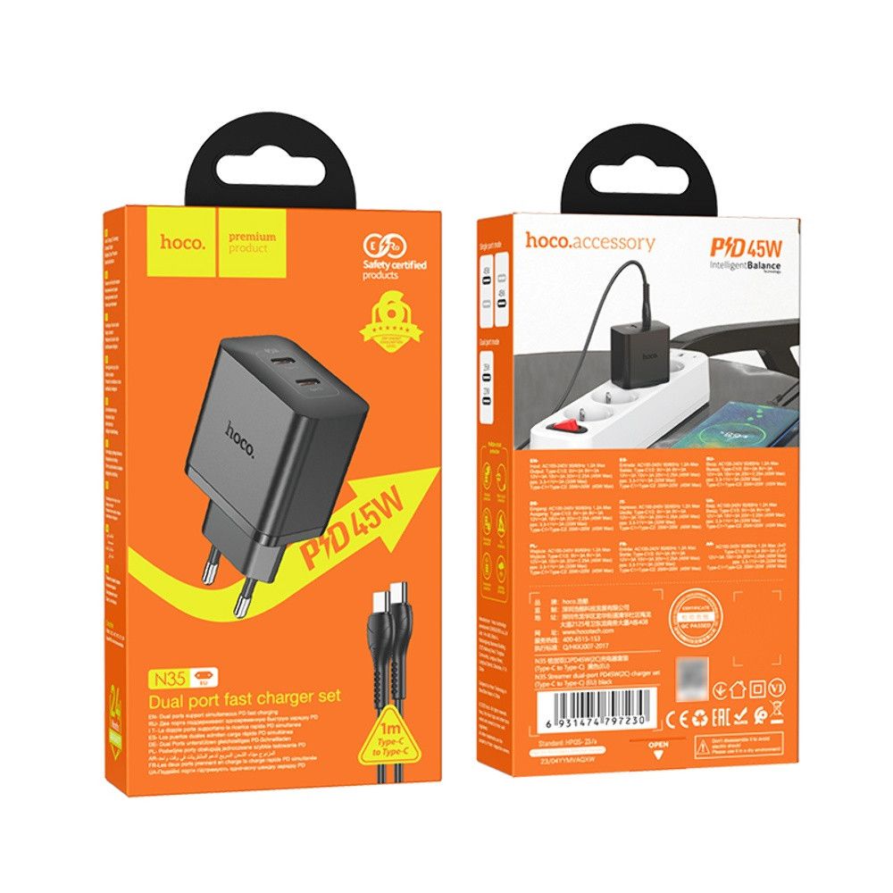 Сетевое зарядное устройство Hoco N35 2 Type-C PD 45W черное + кабель Type-C to Type-C