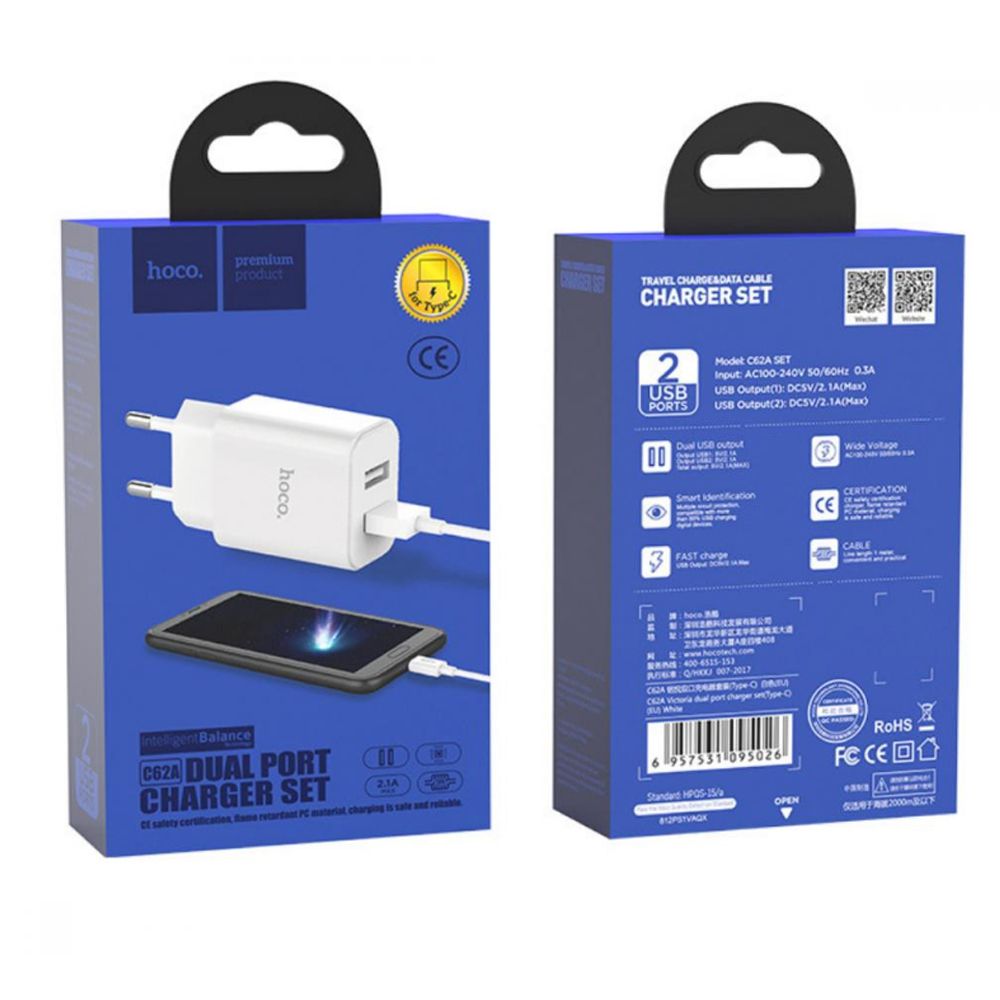 Зарядка Hoco C62A Victoria Type-C 2USB 2.1A White