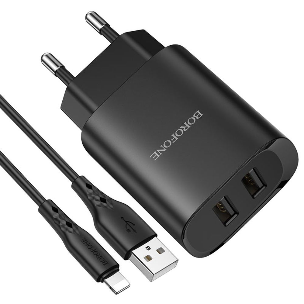 Сетевое зарядное устройство Borofone BN2 2 USB черное с кабелем USB to Lightning