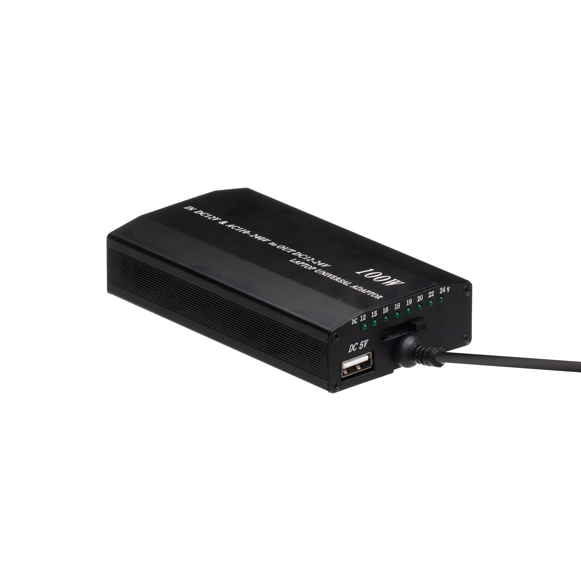100W универсальное зарядное устройство для ноутбука с авто адаптером, черное