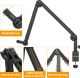 - Эта модель штатива разработана специально для профессиональной установки оборудования на столе. Она обеспечивает точную регулировку положения устройств и надёжную фиксацию без вибраций и смещения, что особенно важно при съёмках, стримах и звукозаписи.