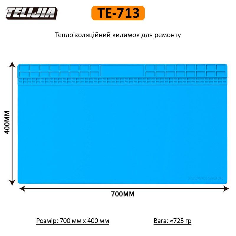 Коврик теплоизоляционный силиконовый TELIJIA TE-713 для пайки и ремонта техники 700x400 мм Blue