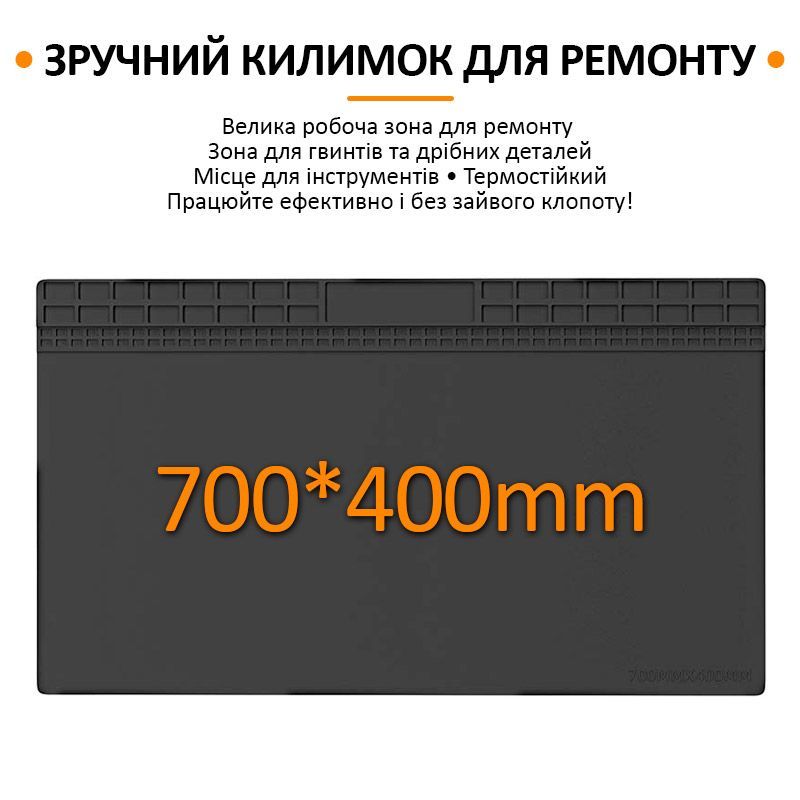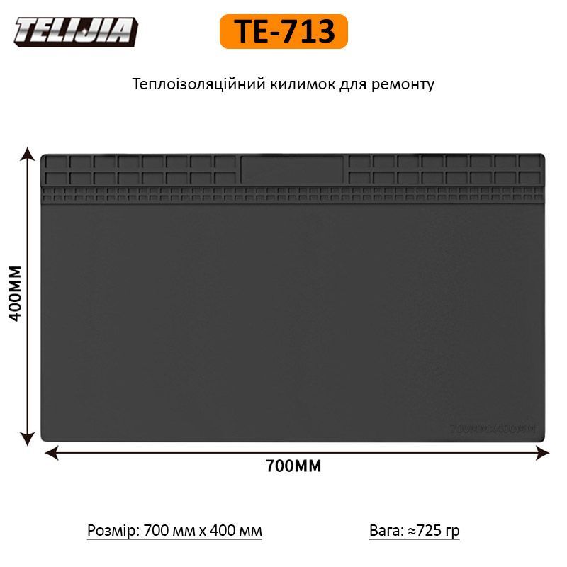Теплоизоляционный силиконовый коврик TELIJIA TE-713 для пайки и ремонта 700x400 мм Black