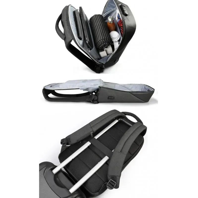 - Этот рюкзак выполнен в антивор-концепции — без наружных карманов, с защищёнными молниями и встроенным кодовым замком, который блокирует основное отделение. Это обеспечивает надёжную защиту содержимого от краж и случайного доступа.