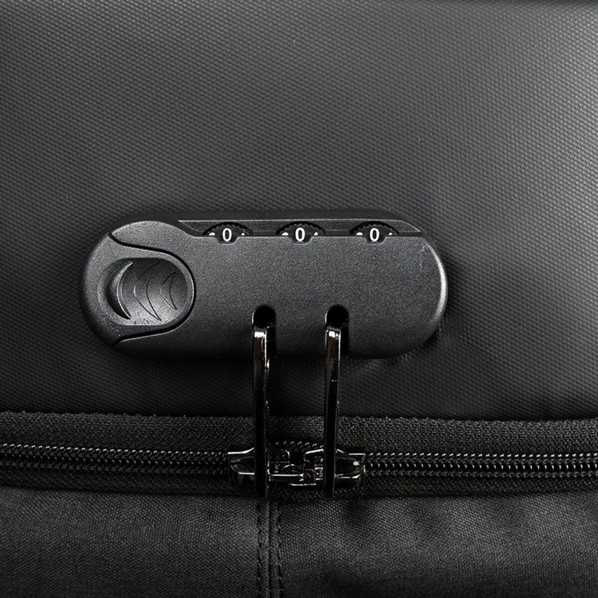 - Этот рюкзак выполнен в антивор-концепции — без наружных карманов, с защищёнными молниями и встроенным кодовым замком, который блокирует основное отделение. Это обеспечивает надёжную защиту содержимого от краж и случайного доступа.
