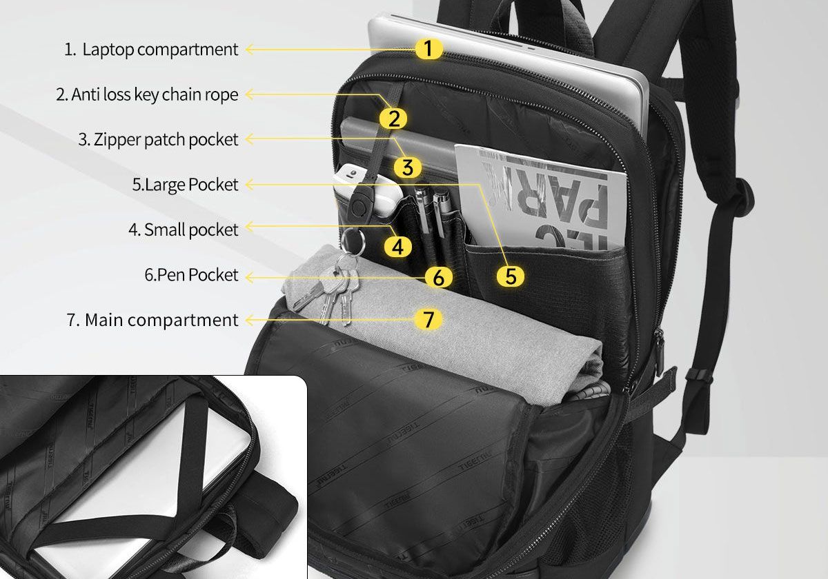 - Модель Tigernu T-B9029 имеет три вместительных отделения, в том числе: