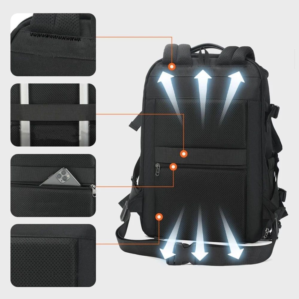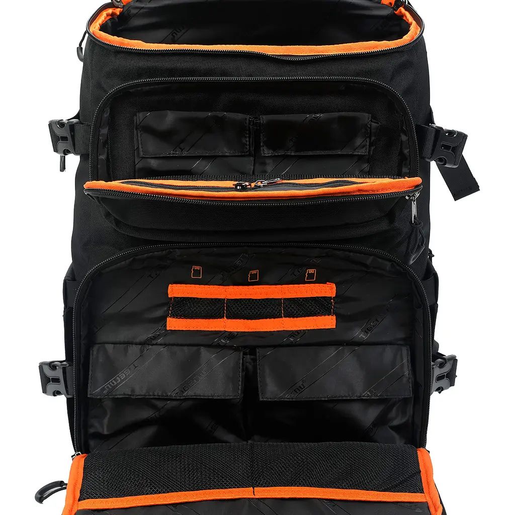- Внутри — до 25 функциональных карманов и отсеков, что позволяет поддерживать идеальный порядок и лёгкий доступ ко всем вещам.