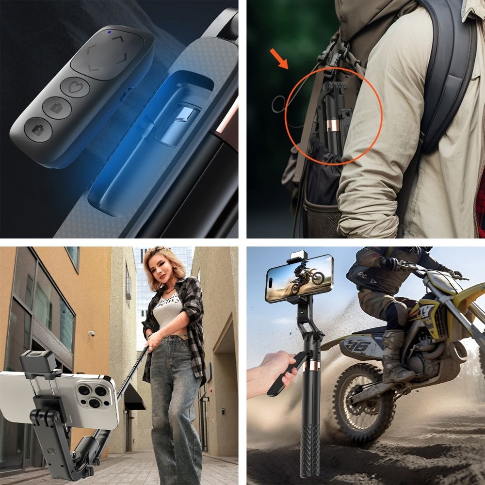 - С пультом и держателем смартфона вы можете легко делать фото или видео удалённо, без помощи друга или ассистента.