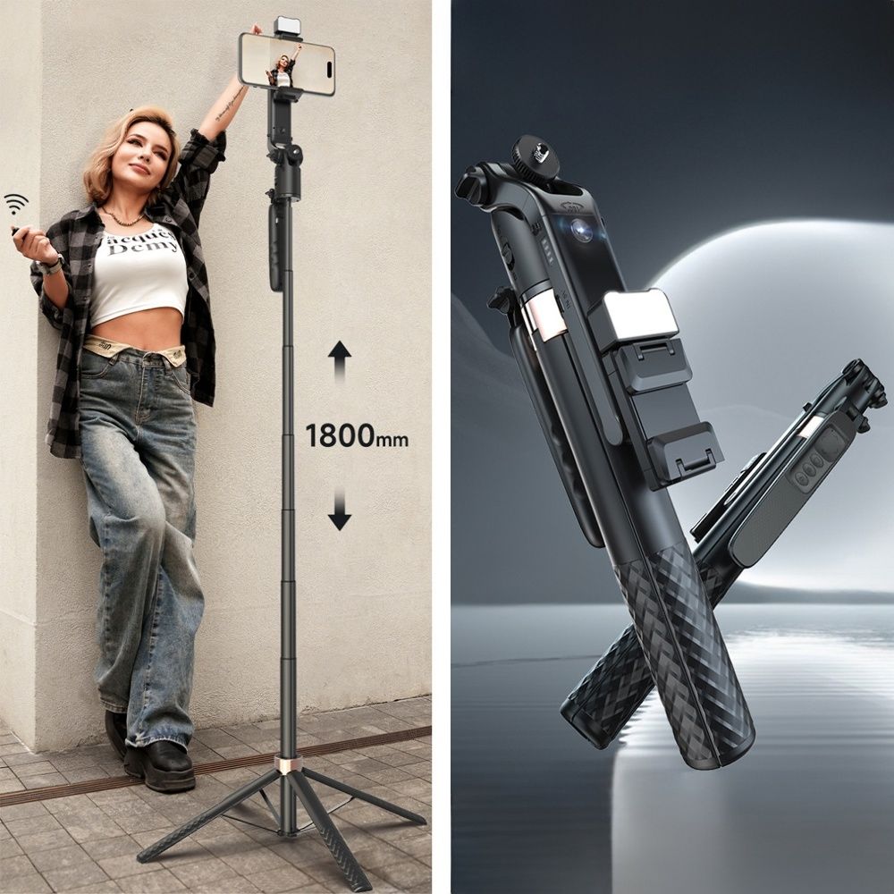 Штатив-трипод Adyss A101 — это универсальное устройство для съёмки фото и видео с функцией автоматического слежения за лицом. Оснащён встроенным аккумулятором и Bluetooth-пультом для дистанционного управления. Благодаря регулируемой высоте до 1.8 м, этот штатив идеально подходит для блогеров, съёмки контента, трансляций и видеозвонков. Прочная конструкция из алюминиевого сплава обеспечивает устойчивость, а функция автоматического поворота позволяет всегда оставаться в кадре без ручной регулировки.