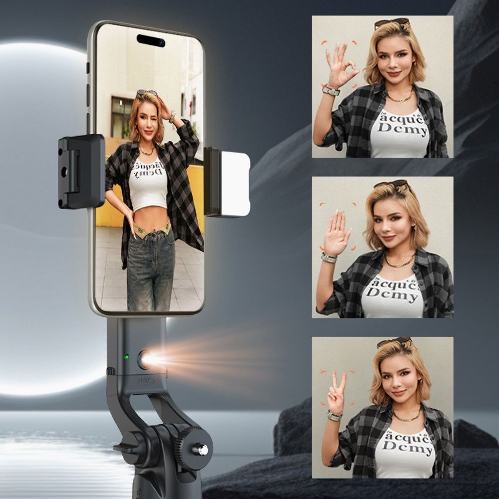 - Устройство способно самостоятельно распознавать лицо и поворачиваться за ним, обеспечивая удобство при съёмке себя или группы без необходимости вручную регулировать камеру.