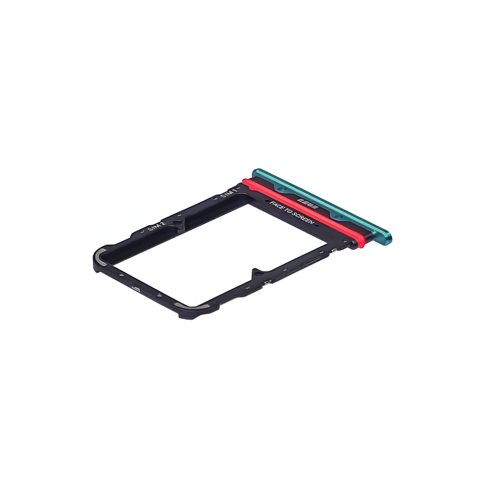 Это подходящий по размеру и форме лоток для установки двух SIM-карт. Деталь полностью совместима с конструкцией смартфона, обеспечивая надежное удержание карт и стабильную работу устройства.