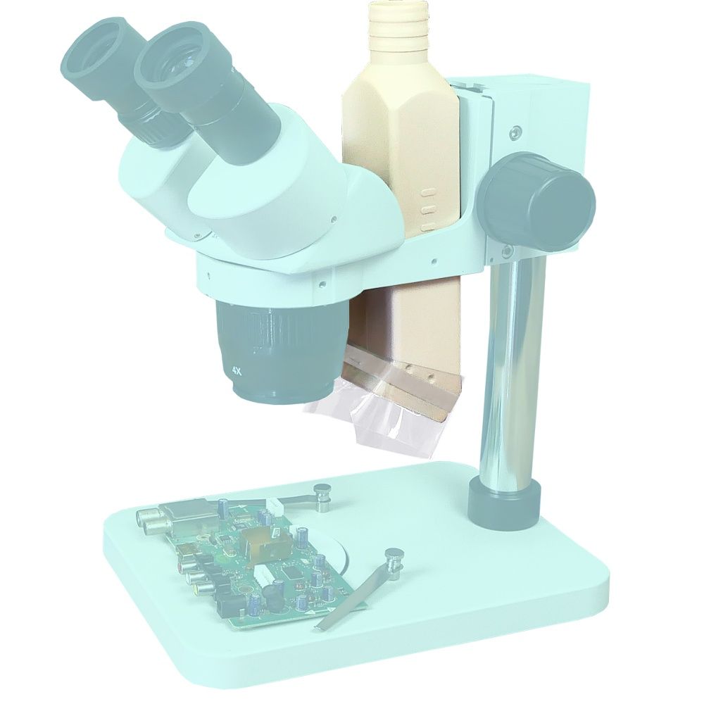 - Постоянное удаление дыма уменьшает вдыхание продуктов пайки, снижает оседание флюса на линзах и корпусе микроскопа, что продлевает срок службы оптики и делает работу комфортнее при длительных сессиях.