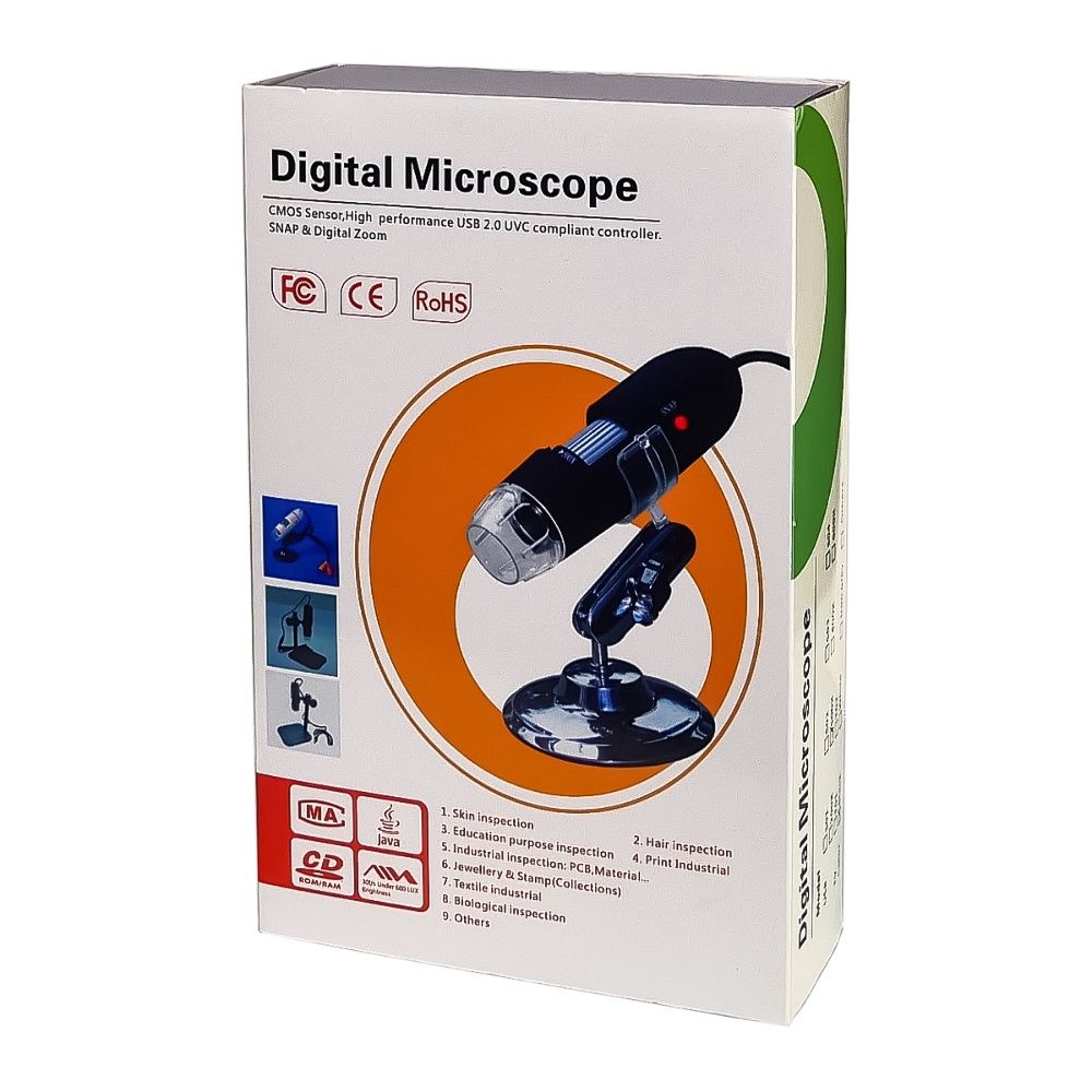 Это компактный USB-микроскоп с подсветкой и регулируемой стойкой, предназначенный для детального осмотра плат, микросхем, радиодеталей, элементов механики, а также для учебных и бытовых задач. Он обеспечивает оптическое увеличение до 500х и вывод изображения на экран компьютера в реальном времени.
