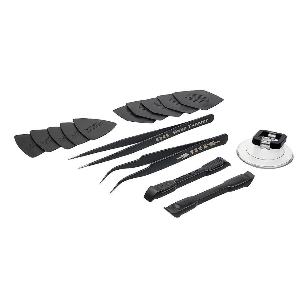 - Пластиковые лопатки, медиаторы, пинцеты и присоска позволяют открывать корпуса и снимать дисплеи без повреждений, что особенно важно при работе с современными гаджетами.
