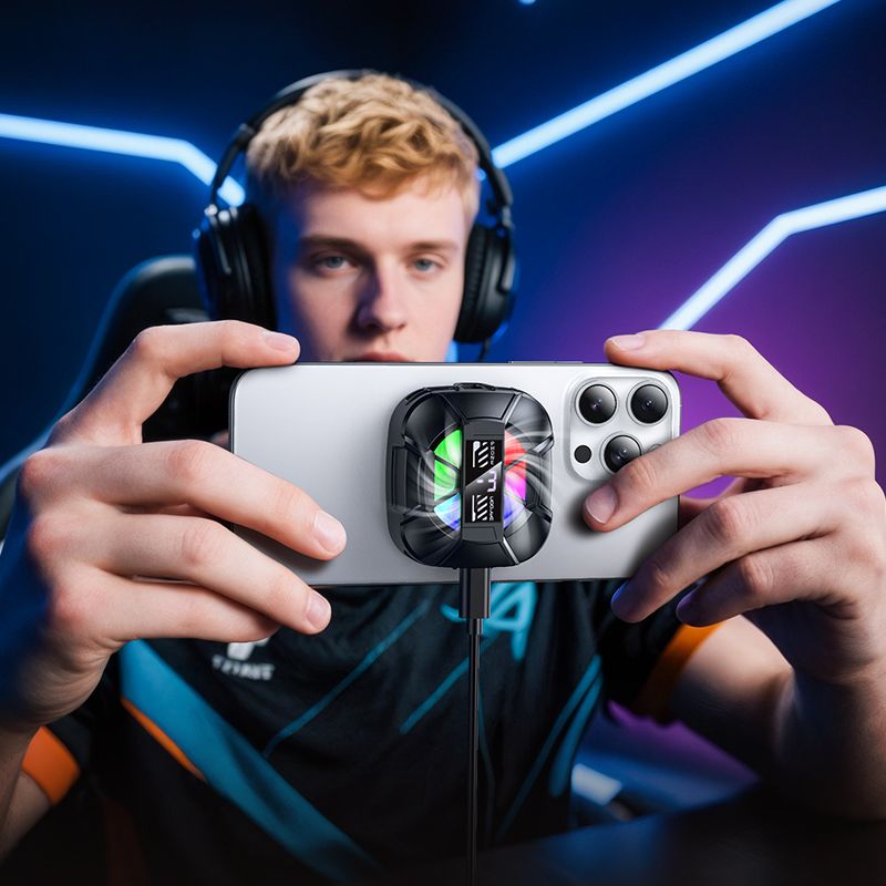 Hoco GA5 – это компактный игровой мобильный кулер для смартфона, который эффективно отводит тепло от корпуса и поддерживает стабильную производительность даже во время длительных игровых сессий. Полупроводниковый элемент охлаждения в сочетании с мощным вентилятором, цифровым дисплеем и яркой RGB-подсветкой делает устройство незаменимым аксессуаром для мобильных геймеров.