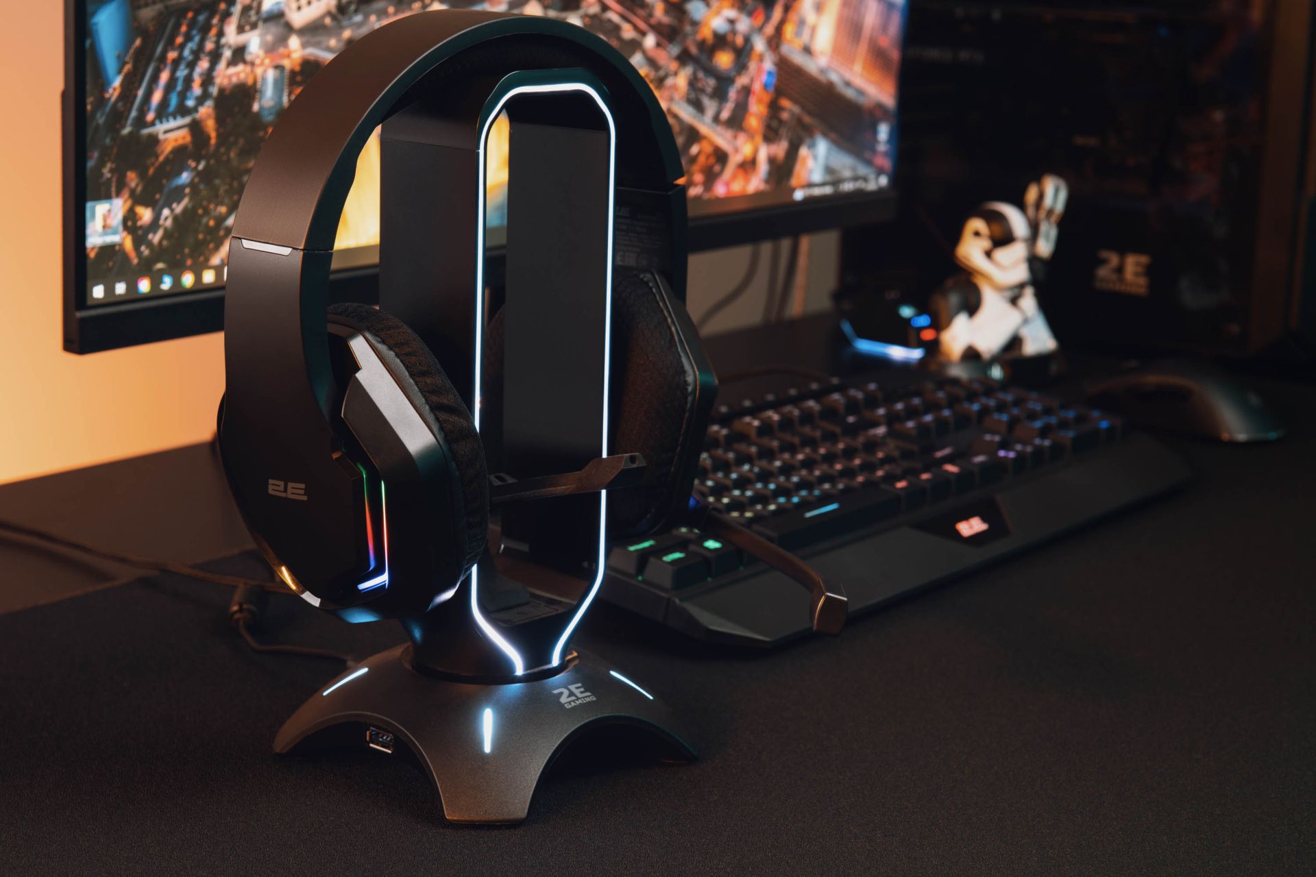 - Подсветка чашек делает гарнитуру эффектным элементом игрового сетапа и визуально подчеркивает динамику происходящего на экране.