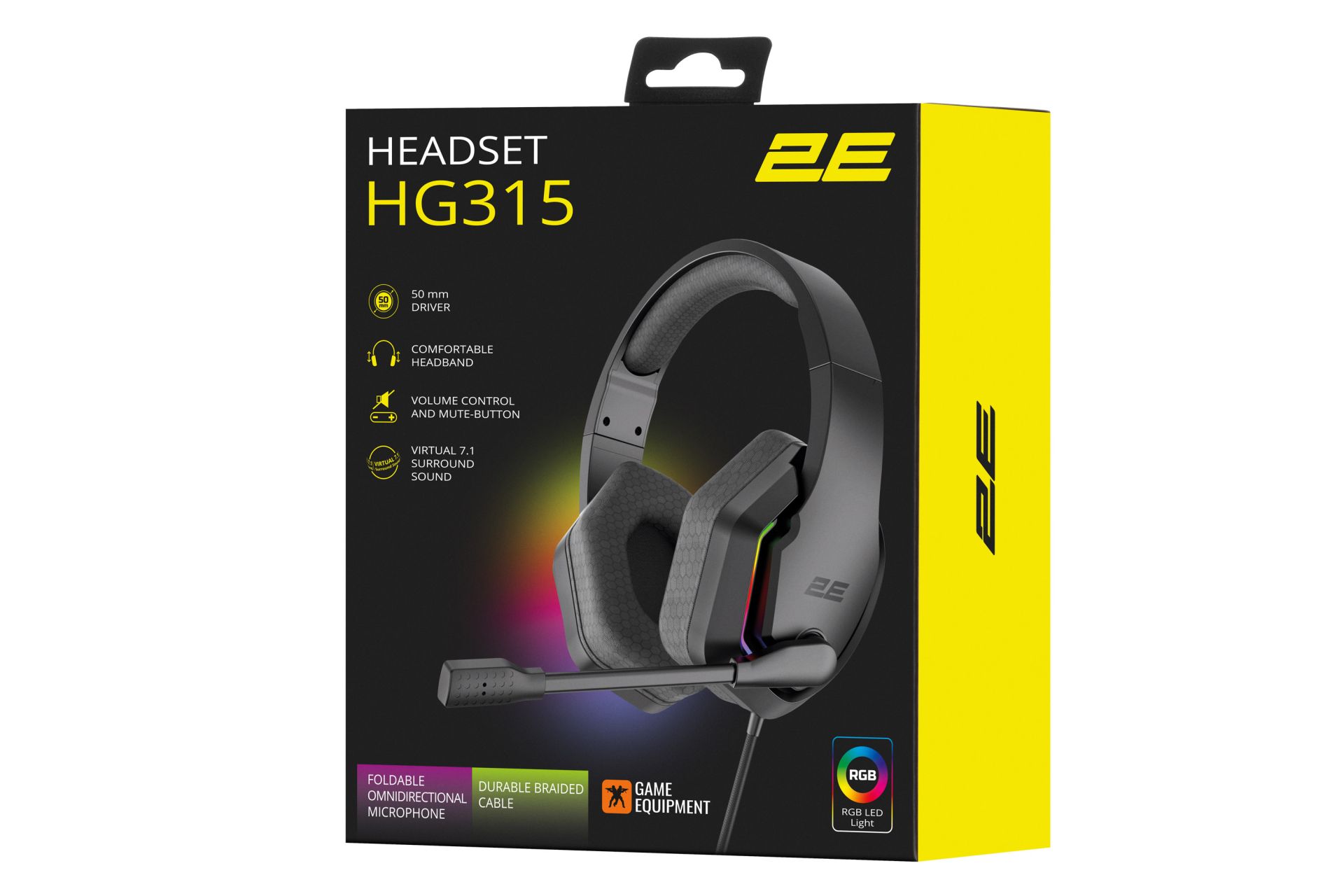 Игровые проводные наушники 2E HG315 (7.1, USB-A, RGB, 2м, черные) для геймеров