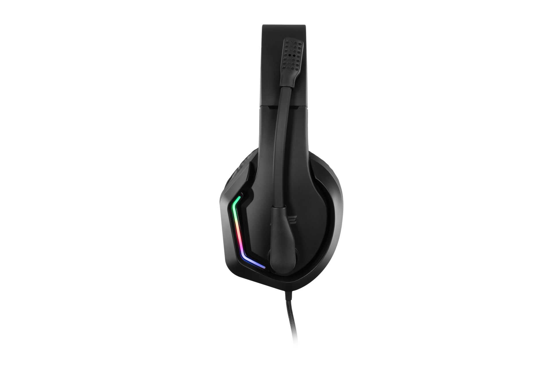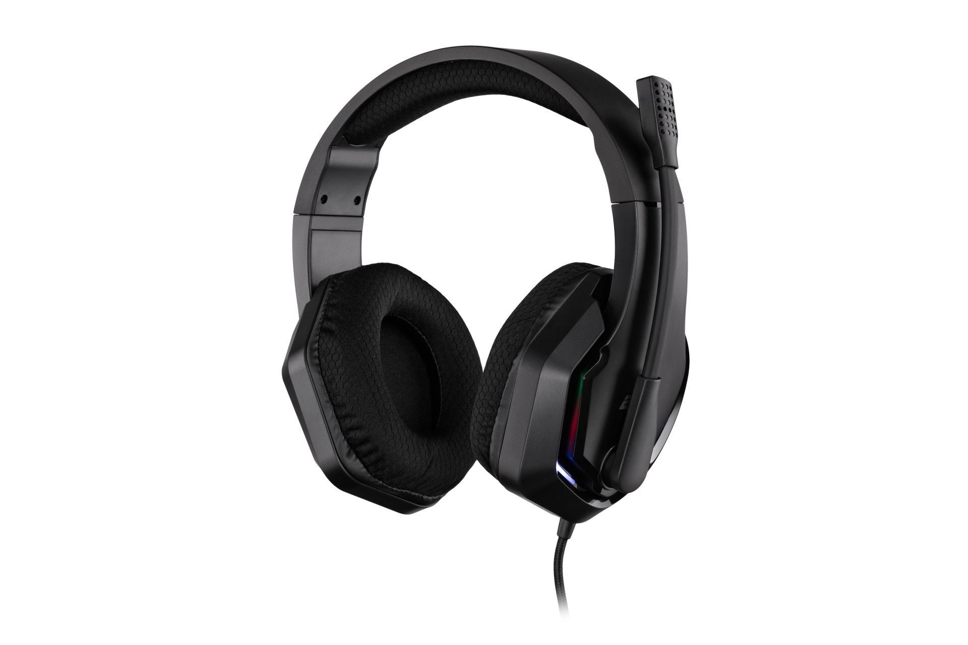 Широкое мягкое оголовье и крупные амбушюры повторяют форму головы и ушей, снижая давление и усталость при многочасовых игровых сессиях. Двухметровый кабель в тканевой оплетке не путается и выдерживает интенсивное ежедневное использование. Встроенная RGB-подсветка подчеркивает игровой характер гарнитуры и гармонично смотрится в составе ПК-сетапа.