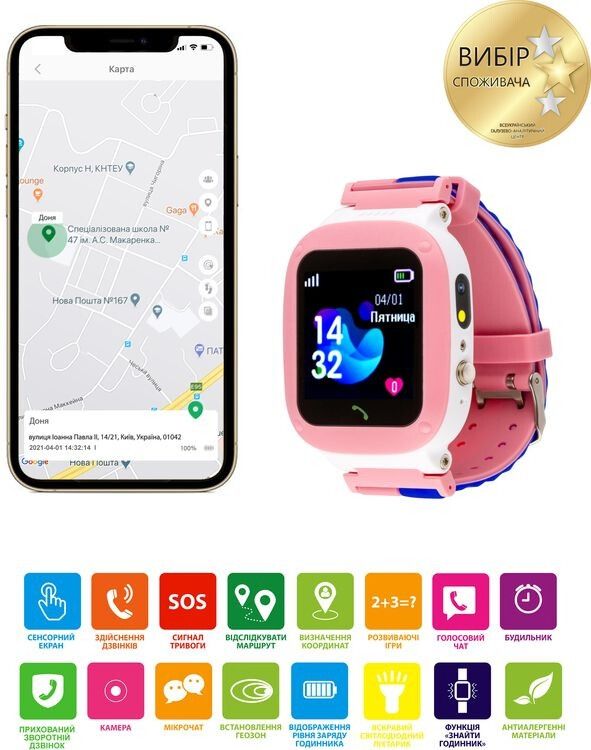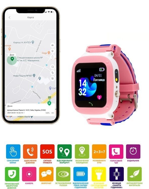Детские смарт-часы AmiGo с Splashproof Camera и Led Pink UA UCRF (модель GO004)
