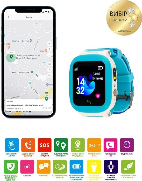 AmiGo GO004 Splashproof — то надежные детские смарт-часы с цветным сенсорным дисплеем, камерой, ярким фонариком и возможностью звонков через SIM-карту. Устройство помогает родителям всегда оставаться на связи и контролировать местоположение ребенка, а ребенку — чувствовать себя самостоятельным и в безопасности. Эти смарт-часы сертифицированы UA UCRF и официально допущены к использованию на территории Украины.