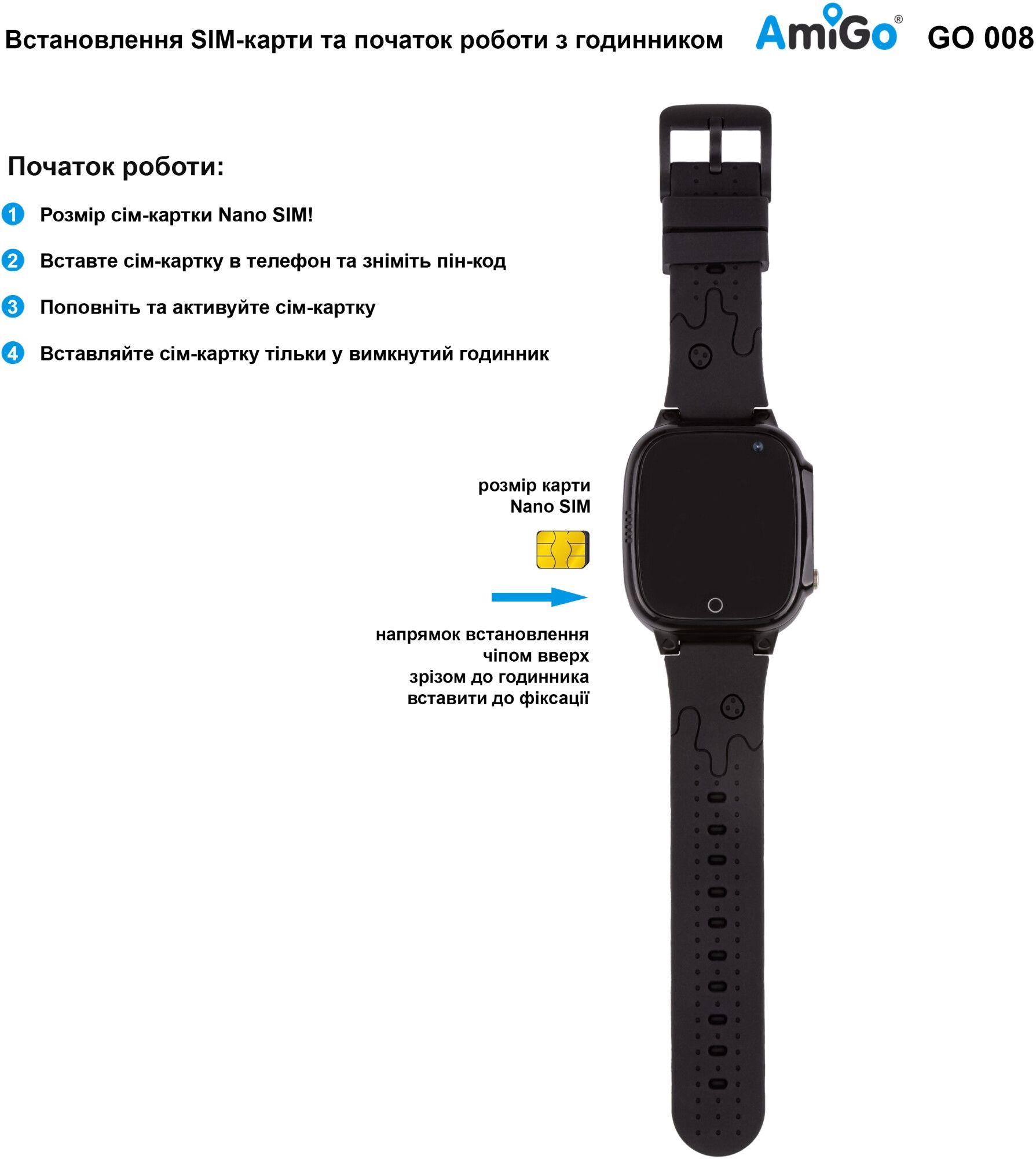 Детские смарт-часы AmiGo GO008 MILKY GPS WIFI Black UA UCRF