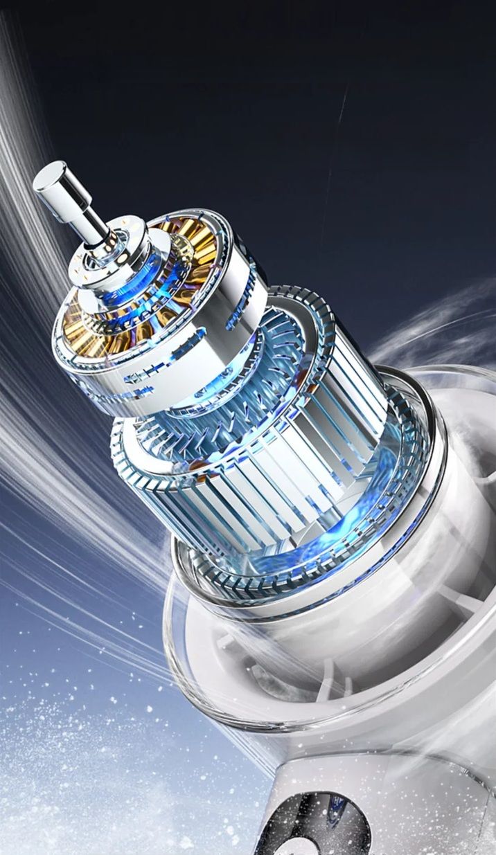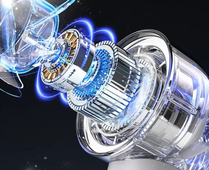 - Используется высокоскоростной бесщеточный двигатель, устойчивый к износу и перегреву. Он обеспечивает сильный поток воздуха при низком уровне шума, что особенно важно в офисе, транспорте или ночью.