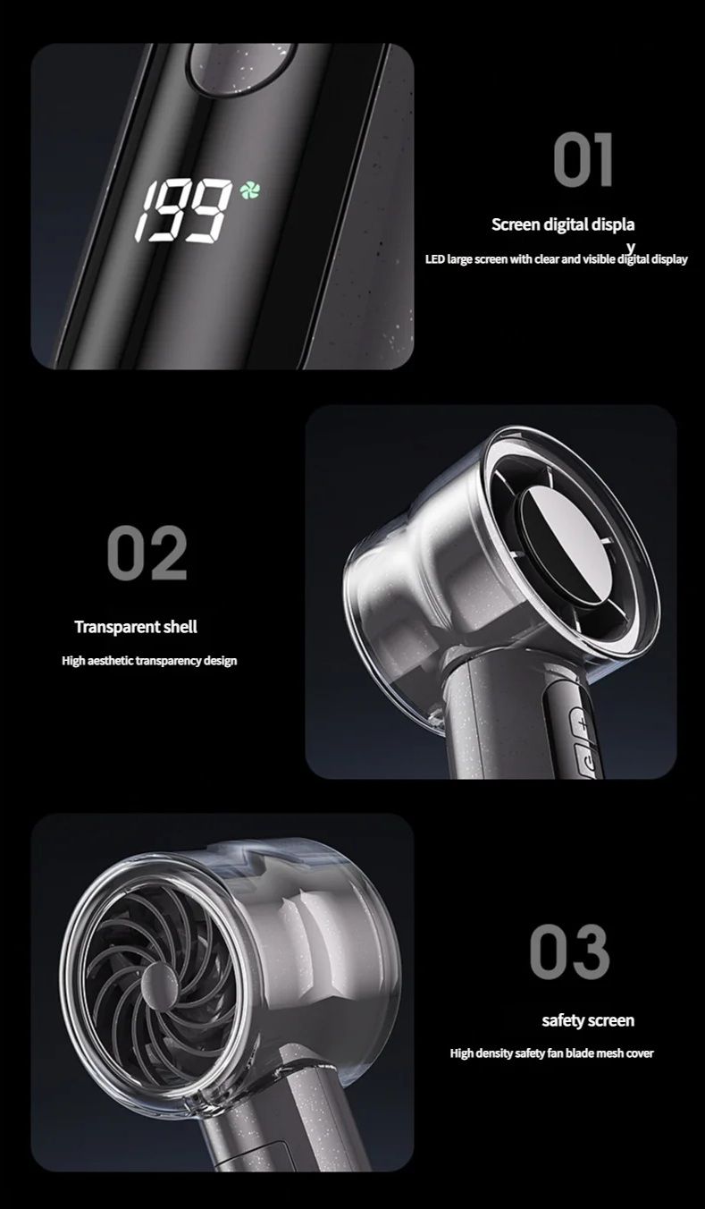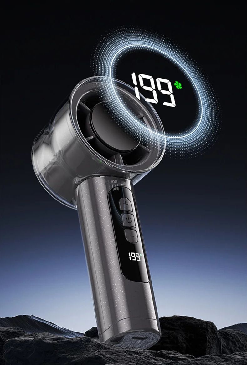 Компактный вентилятор MS-111 создан для тех, кому нужно быстрое и комфортное охлаждение в дороге, на улице, в офисе или дома. Прозрачный цилиндрический корпус с турбинной крыльчаткой, цифровой дисплей и плавная регулировка скорости делают его не просто вентилятором, а современным персональным гаджетом для жаркой погоды. Благодаря высокой скорости воздушного потока и множества уровней настройки устройство обеспечивает как легкий бриз, так и мощный поток воздуха, сравнимый с «штормовым» режимом у стационарных моделей.