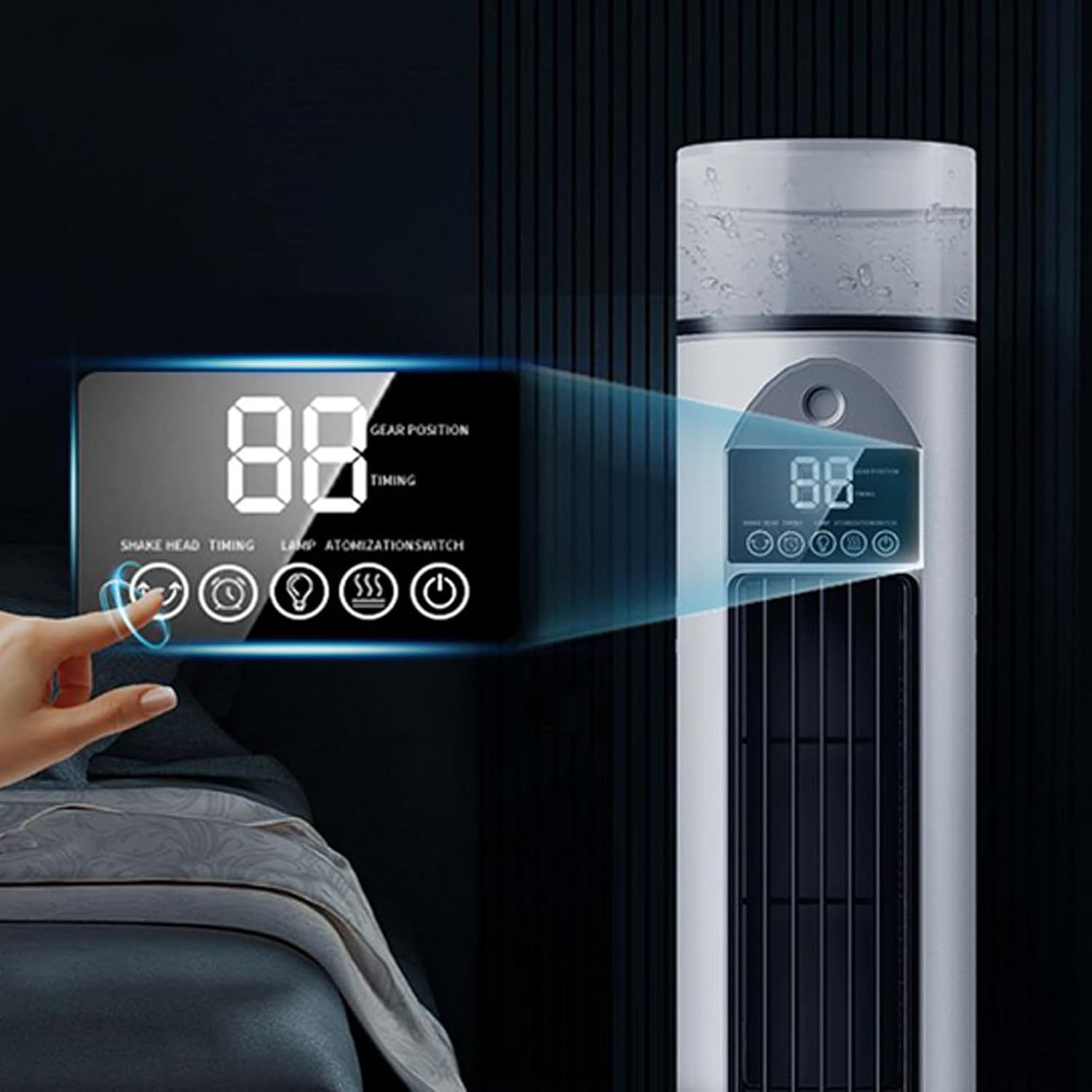 - Все функции доступны как с сенсорной панели на корпусе, так и с компактного инфракрасного пульта: включение/выключение, регулировка скорости, поворот (осцилляция), включение/отключение увлажнения, подсветка, настройка таймера. Управлять вентилятором можно не вставая с кровати или дивана.