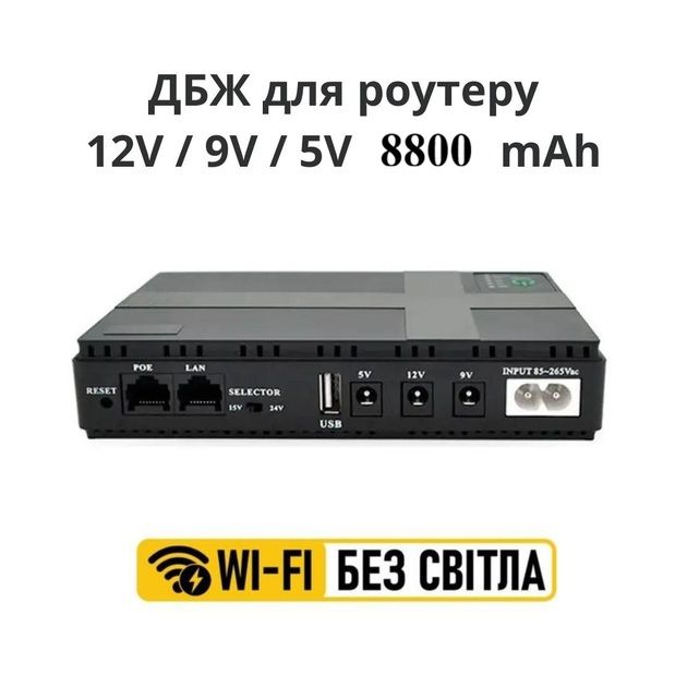 ИБП UPS для роутера 8800mAh DC1018P - 12V/9V/5V, черный