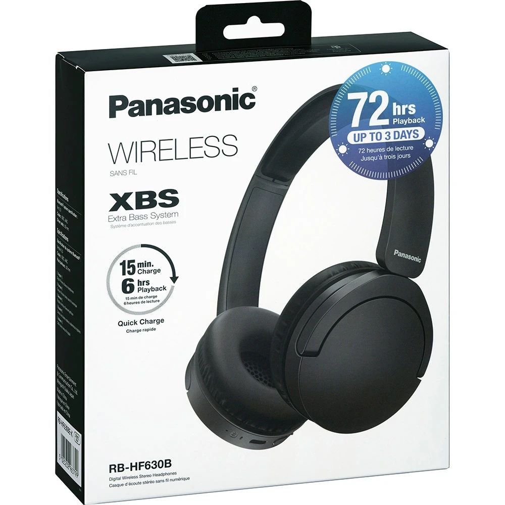 Panasonic RB-HF630B — это беспроводные накладные наушники, созданные для тех, кто ценит сбалансированный Hi-Fi-звук, длительное время автономной работы и высокий комфорт при повседневном использовании. Модель сочетает в себе фирменное качество звучания Panasonic, современный Bluetooth 5.3, технологию усиленных басов XBS и рекордную автономность до 72 часов.