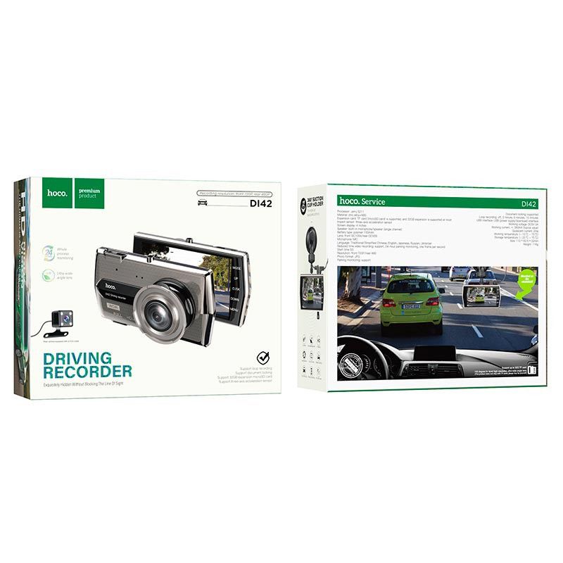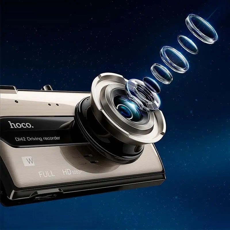 HOCO DI42 — это автомобильный видеорегистратор с двумя камерами, предназначенный для одновременной записи дорожной обстановки спереди и сзади автомобиля. Модель оснащена большим 4-дюймовым экраном, широкоугольным объективом и надёжным металлическим корпусом, что делает устройство удобным для повседневного использования и длительных поездок.
